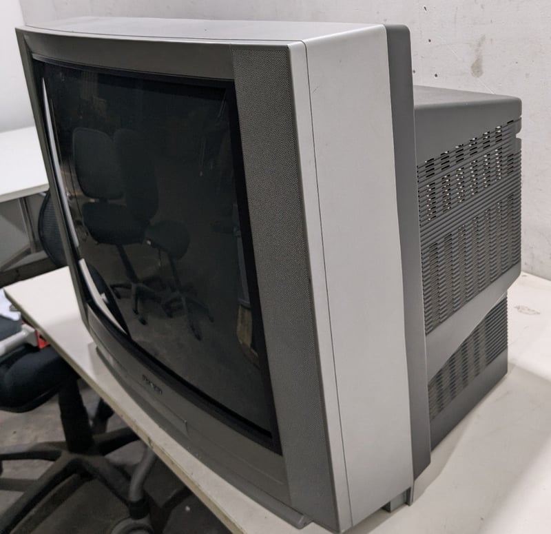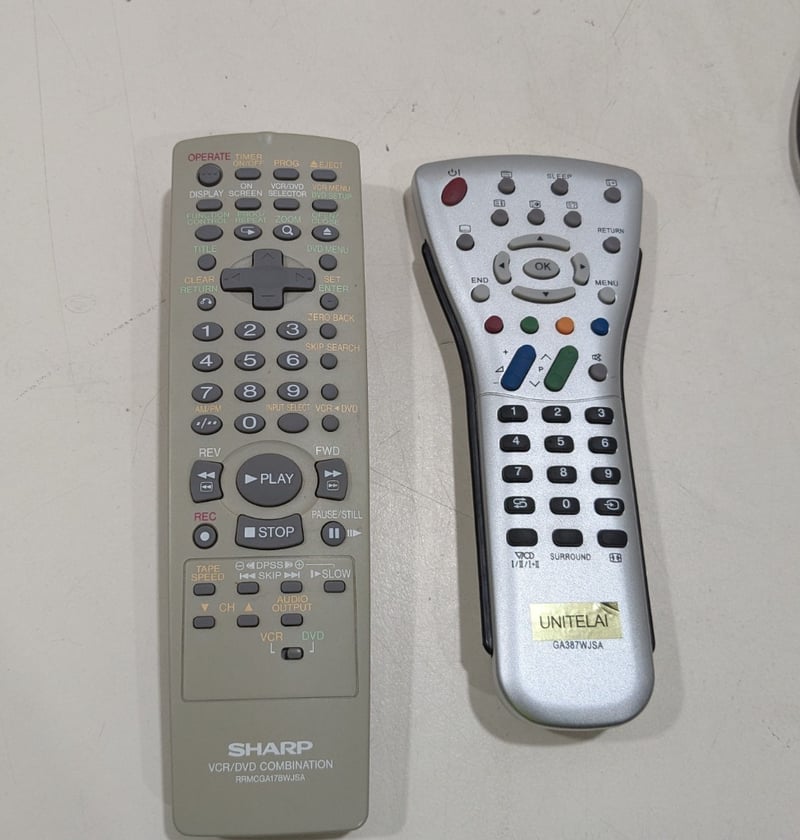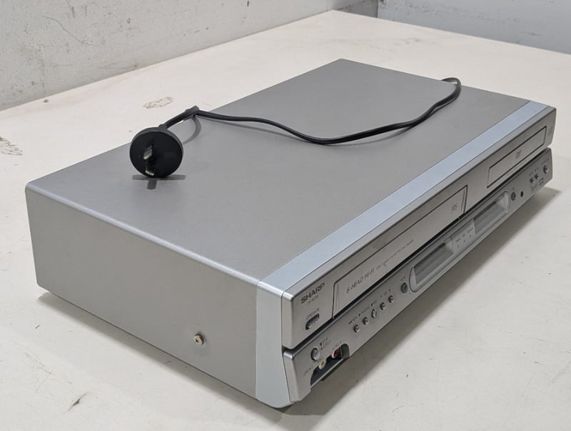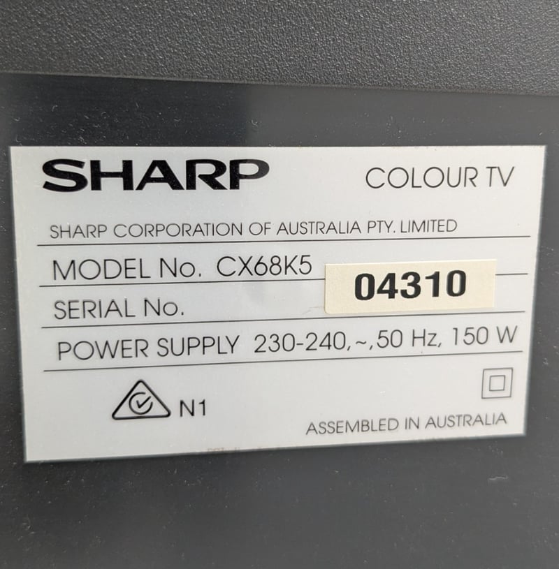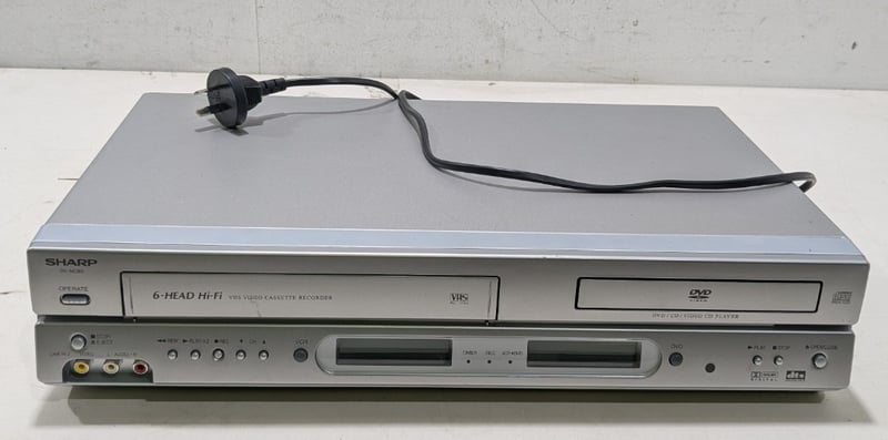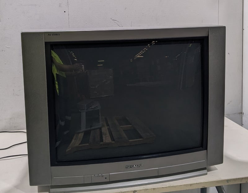 Mobile TV stand, SHARP tv, Sharp VHS player, two remotes includedTv model: CX68K5Tv serial No: 04310VHS model: DV-NC80XVHS serial No: 403734659TV dims: H-60cm W-76cm D-46cmVHS dims: H-10cm W-43cm D-25cmTv stand dims: H-41cm W-78cm D-55cmSold as lot