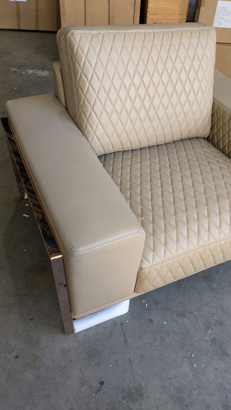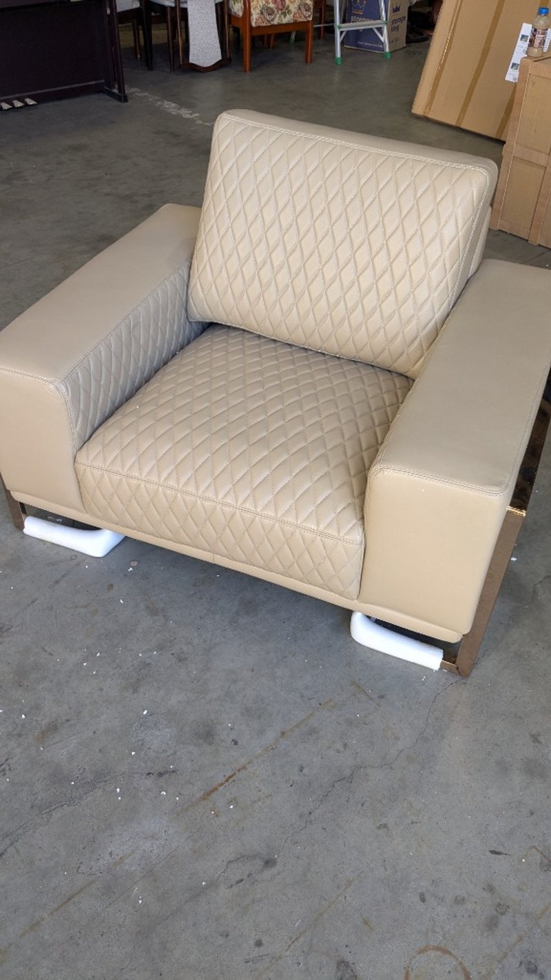 Single Seater Leather Couch, Metal Frame, TanDimensions: 1300mm(W) x 970mm(D) x 900mm(H)