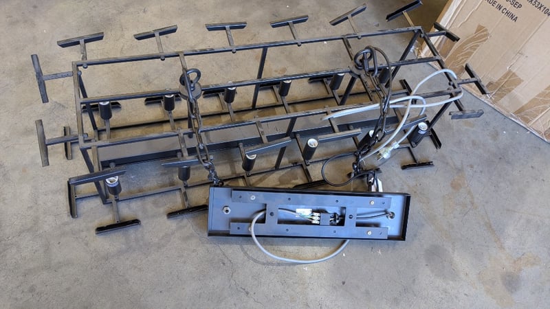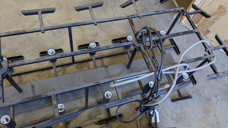 Metal chandelier Fixture, 12 Bulb Slots, 240v Dimensions: 1150mm(W) x 380mm(D) x 280mm(H)