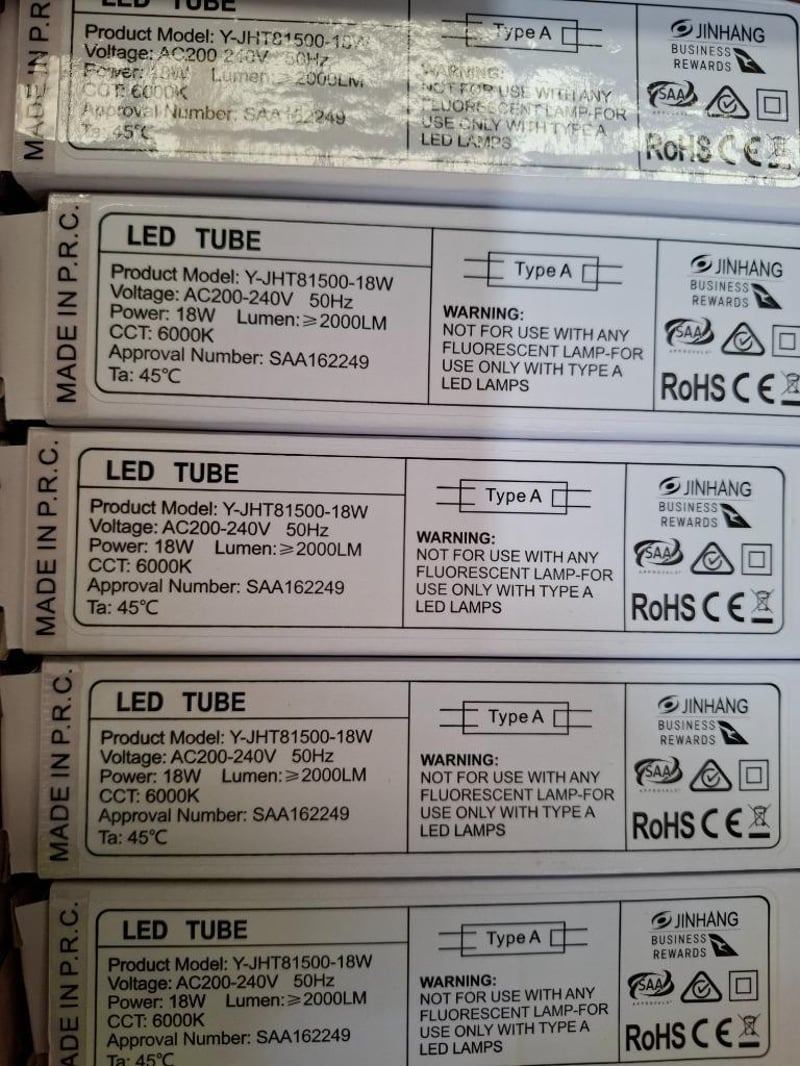 RRP $1650 Combined, JinHang Polycarbonate LED Tube 18W 5FT 6000K