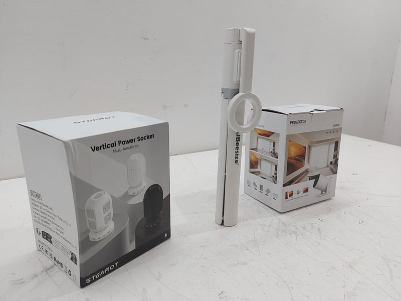 magnetic Selfie Stick Tripod, Ubeesize, Vertical Power Socket, Projector Multimedia, Projector, Quantity 3, New In BoxSold As Lot