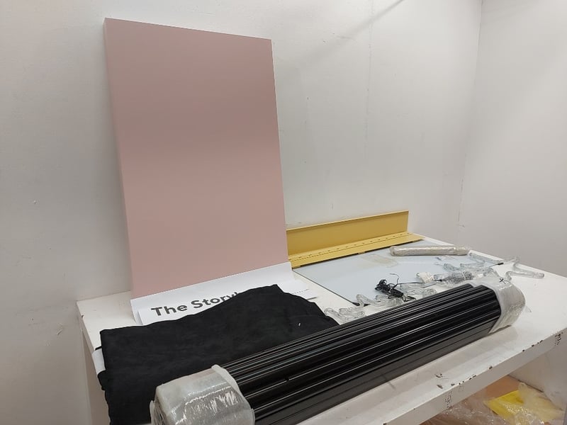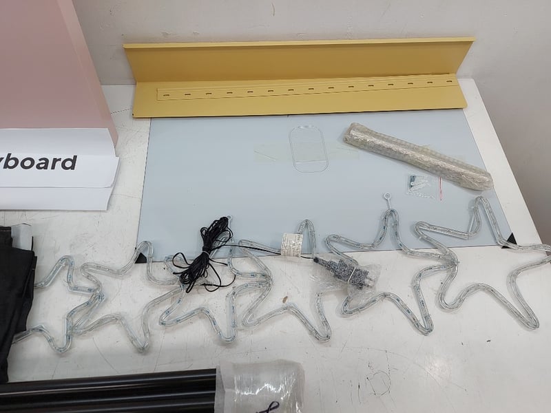 Assorted Lot Includes, The StoryBoard-Mustard, 6-Star Led Roplight Cluster, Portable Fitting Room, And More, Quantity As LotSold As Lot