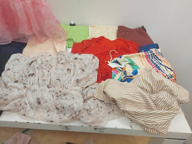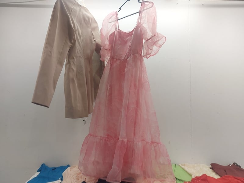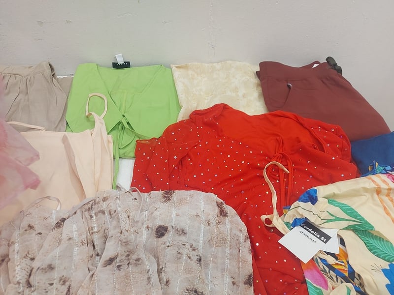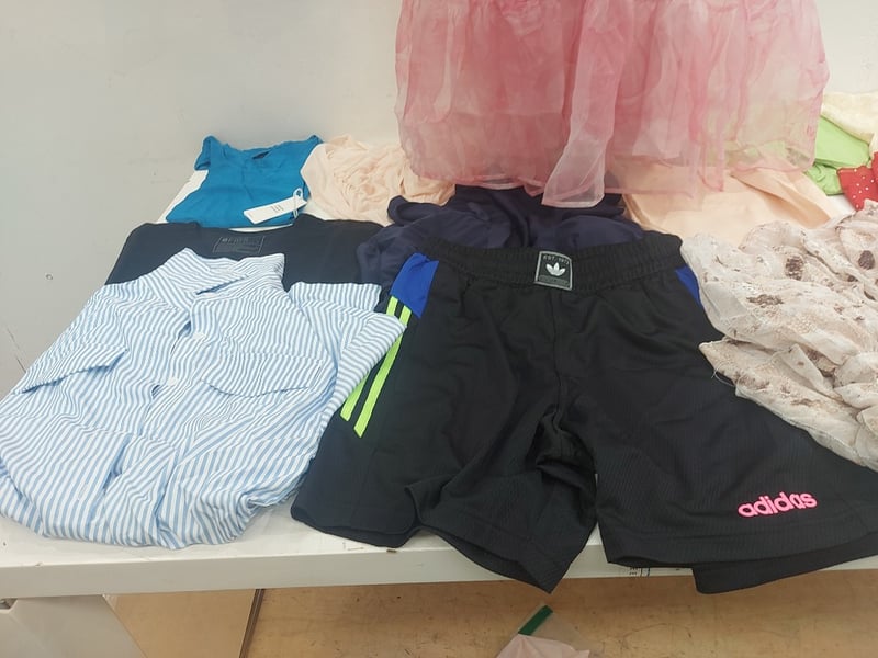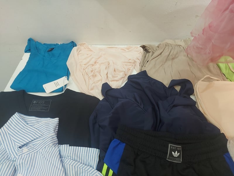 Assorted Clothing Sizes XS-S Includes, Taupe Long-Sleeved Mini Dress, Floral Print Puff Sleeved Dress, Adidas Shorts, And More Quantity As Lot
