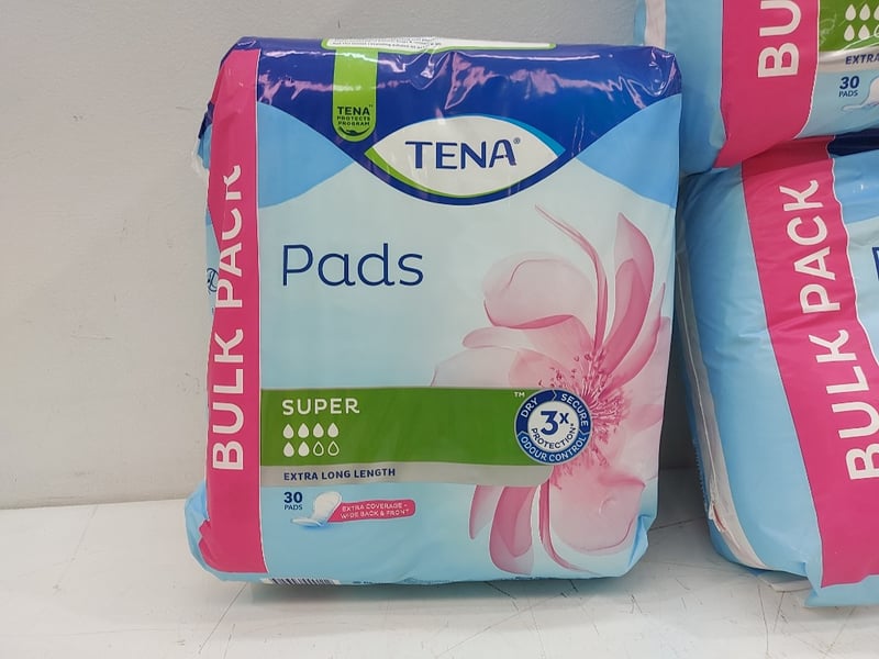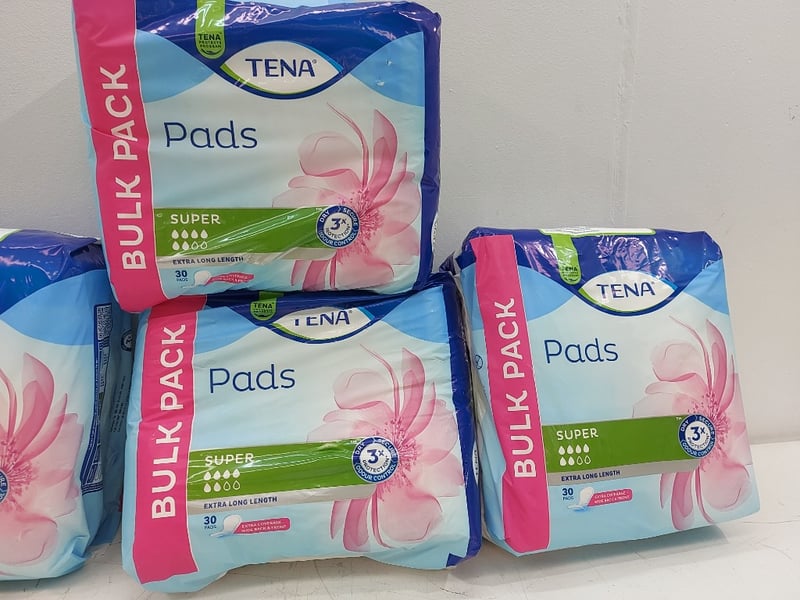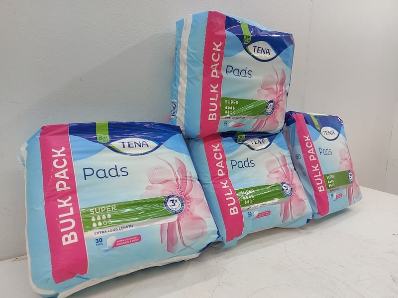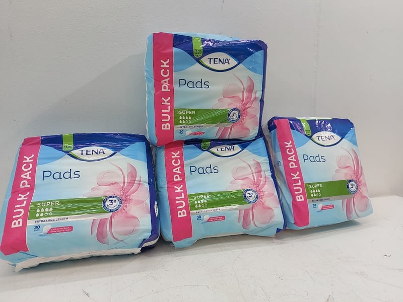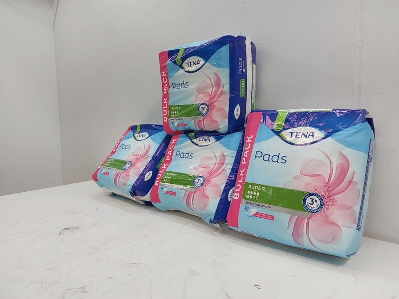 Pads,Bulk Pack, Super, Extra Long Langth, Tena, Quantity 30 Per Pack 4 Packs,