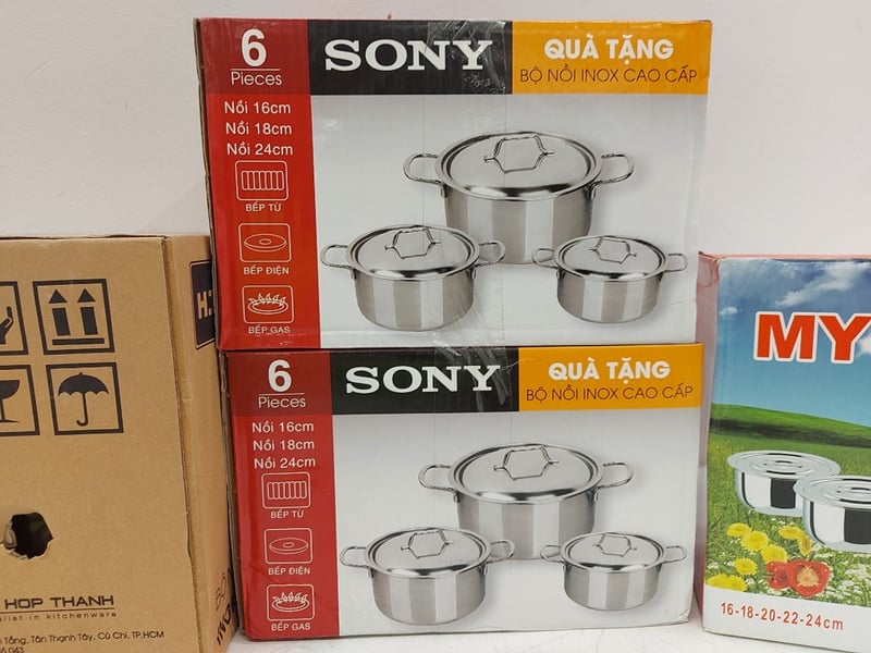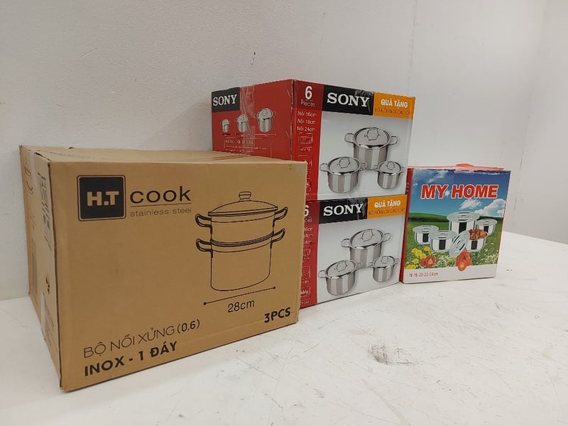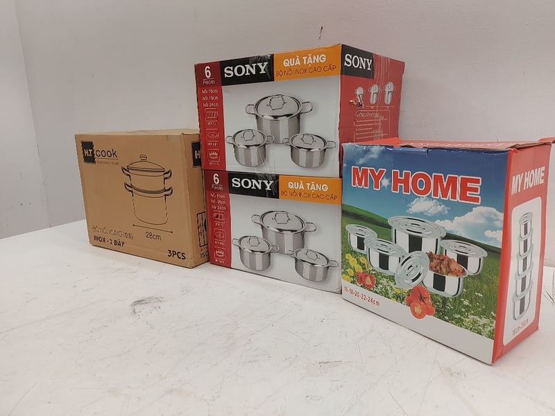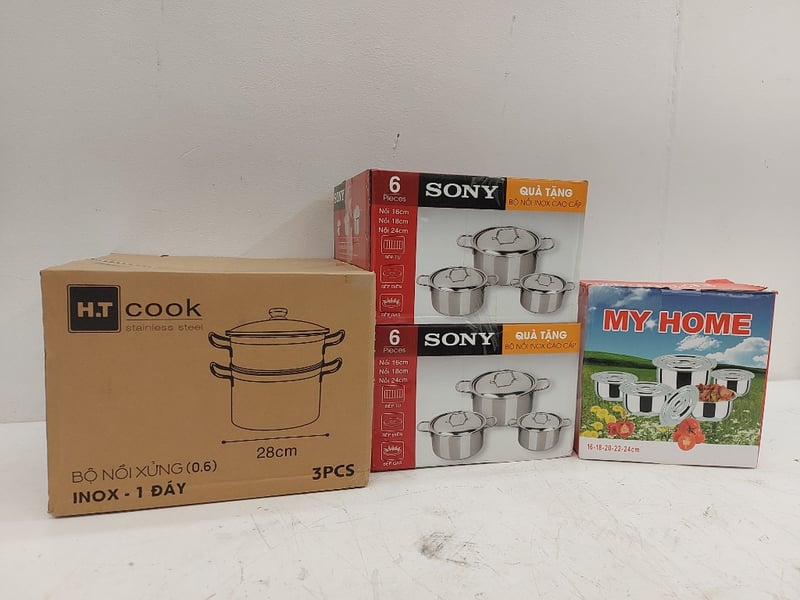 Assorted Pots, Stainless Steel Cookware Set 6 Pieces, Sony, Steamer Pot Set, 3 PCS, H.T Cook, My Home Pots, Quantity 4Sold As Lot