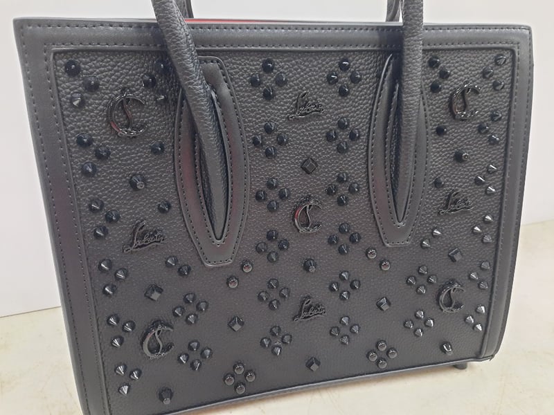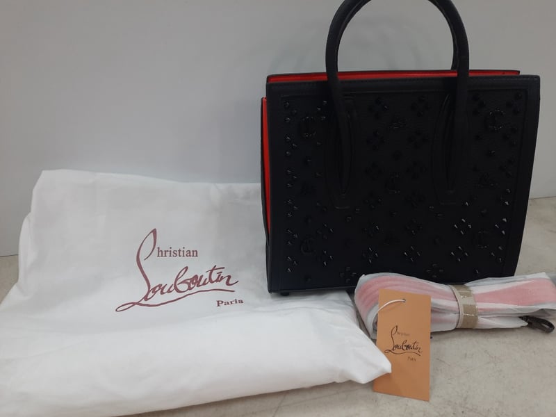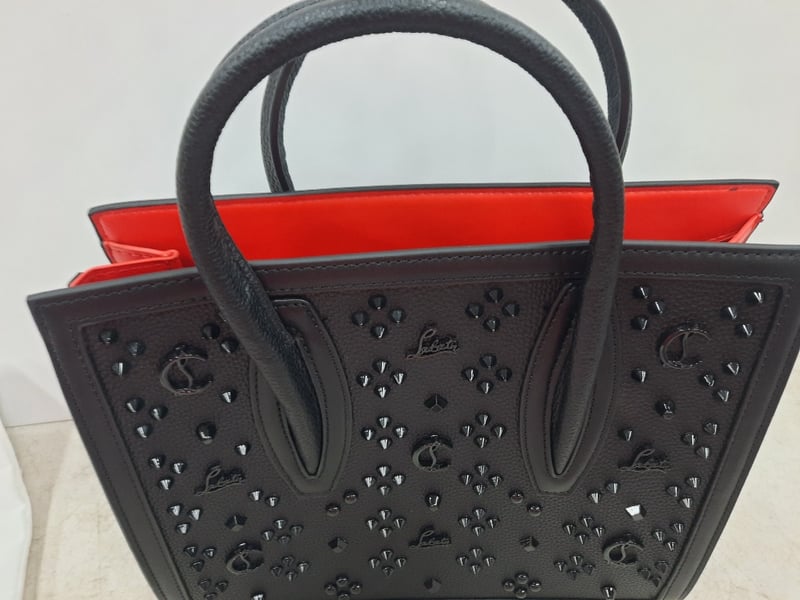 Designer Handbag, Christian LouboutinBlack studded leather with Red interior Includes Handle
