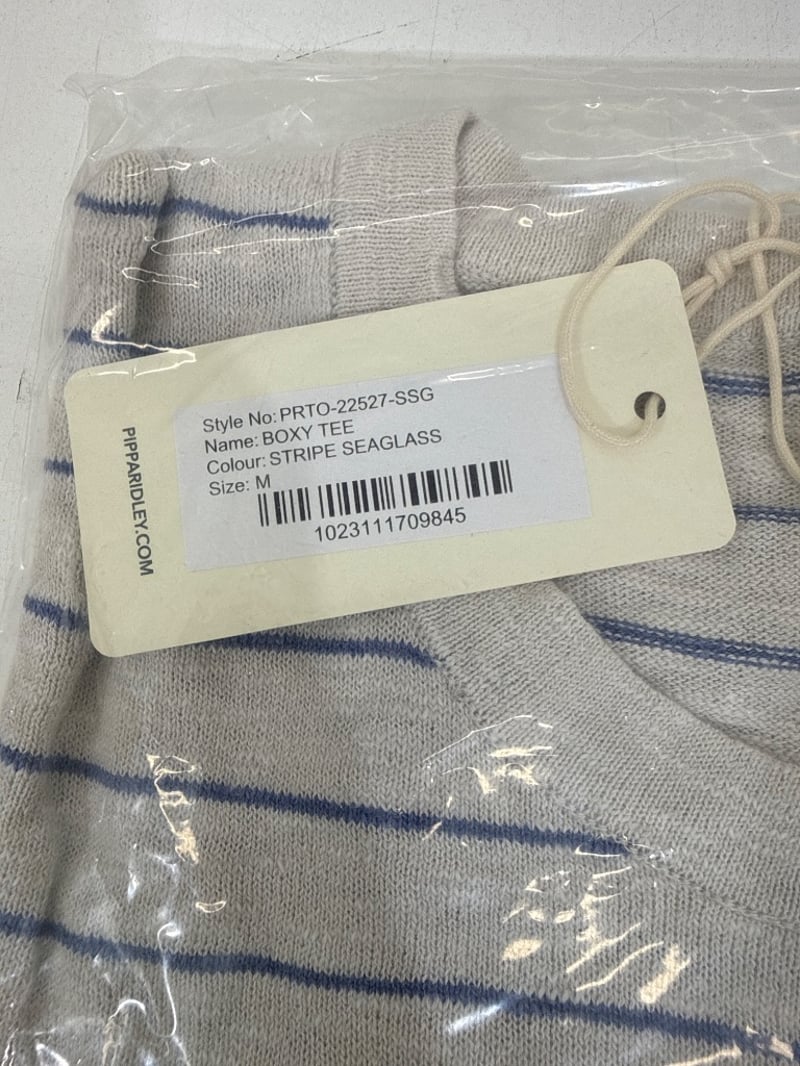 RRP: $129, Boxy Tee, Pippa Ridley, Size: M, Colour: Stripe Seaglass