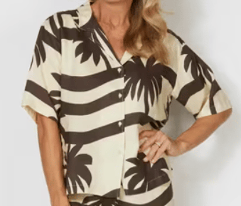 RRP: $189, Angie Shirt, Pippa Ridley, Size: XL, Colour: Cocoa Palma Print