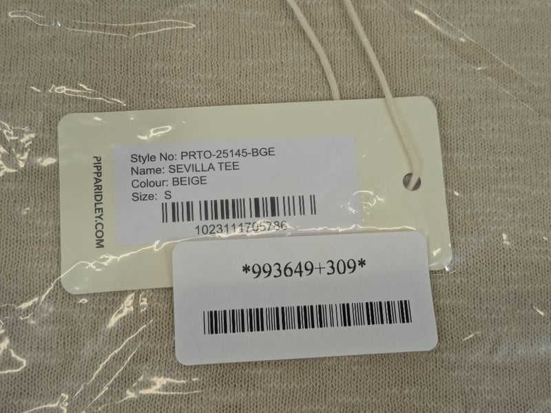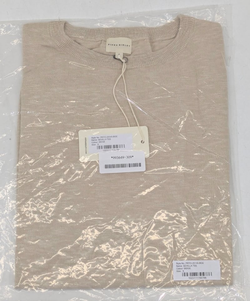 RRP: $129.99, Sevilla Tee, Pippa Ridley, Size: S, Colour: Beige