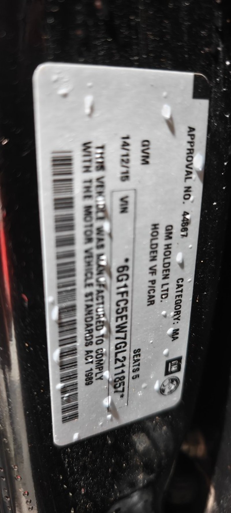 VIN: 6G1FC5EW7GL211857