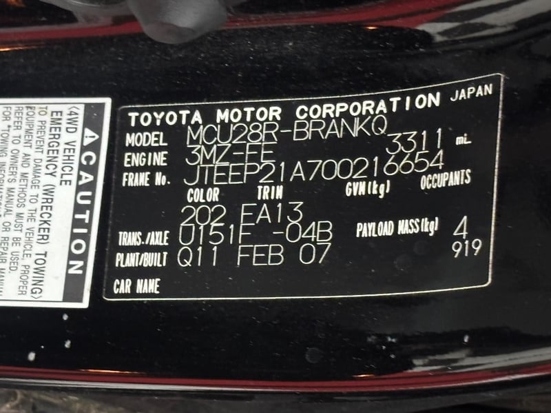 2007 Toyota Kluger MCU28R CV