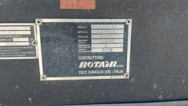 2018 Air CompressorMake: R01A1R SMAModel: MDVS120P7VIN: 6U9VSS00000139824ATM: 2020KGL: 4.3m APPROX
