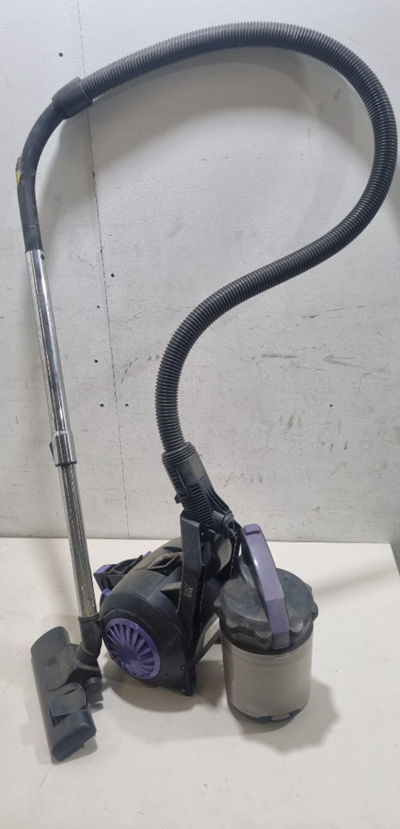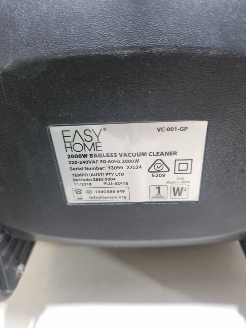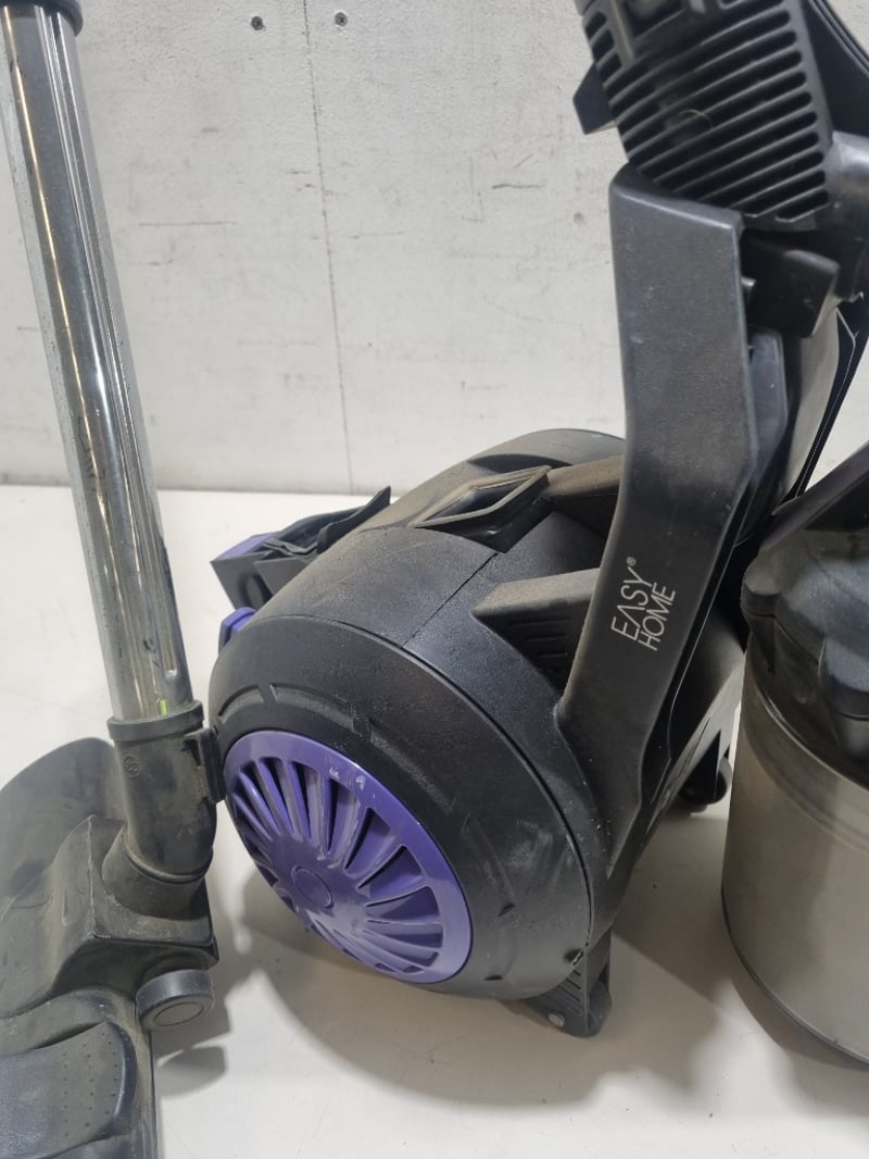 Easy Home bagless vacuum cleaner, model VC-001-GP, 2000W capacity. Features purple and black design.