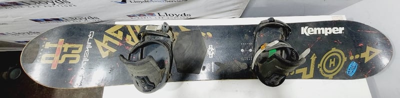 Kemper snowboard with bindings attached. Note: Signs of wear,