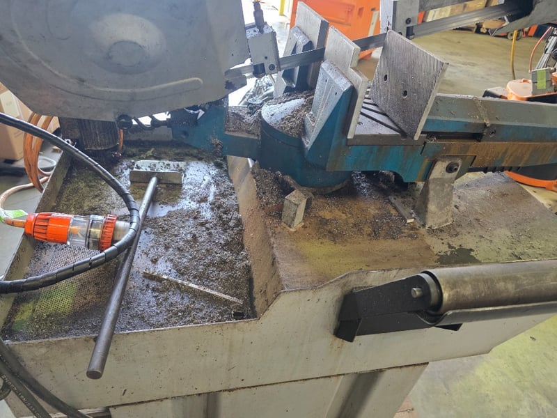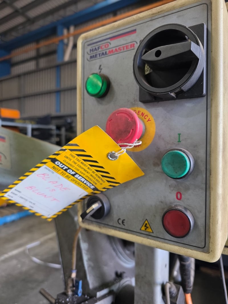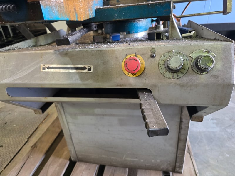 Note: Mounted on Mild Steel Workbench with Chain Grip, tagged out "Blade is Blunt"