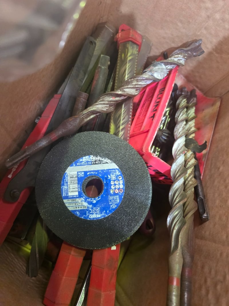 Note: Accessories include engineering chalk, drill bits, used cutting disks and more