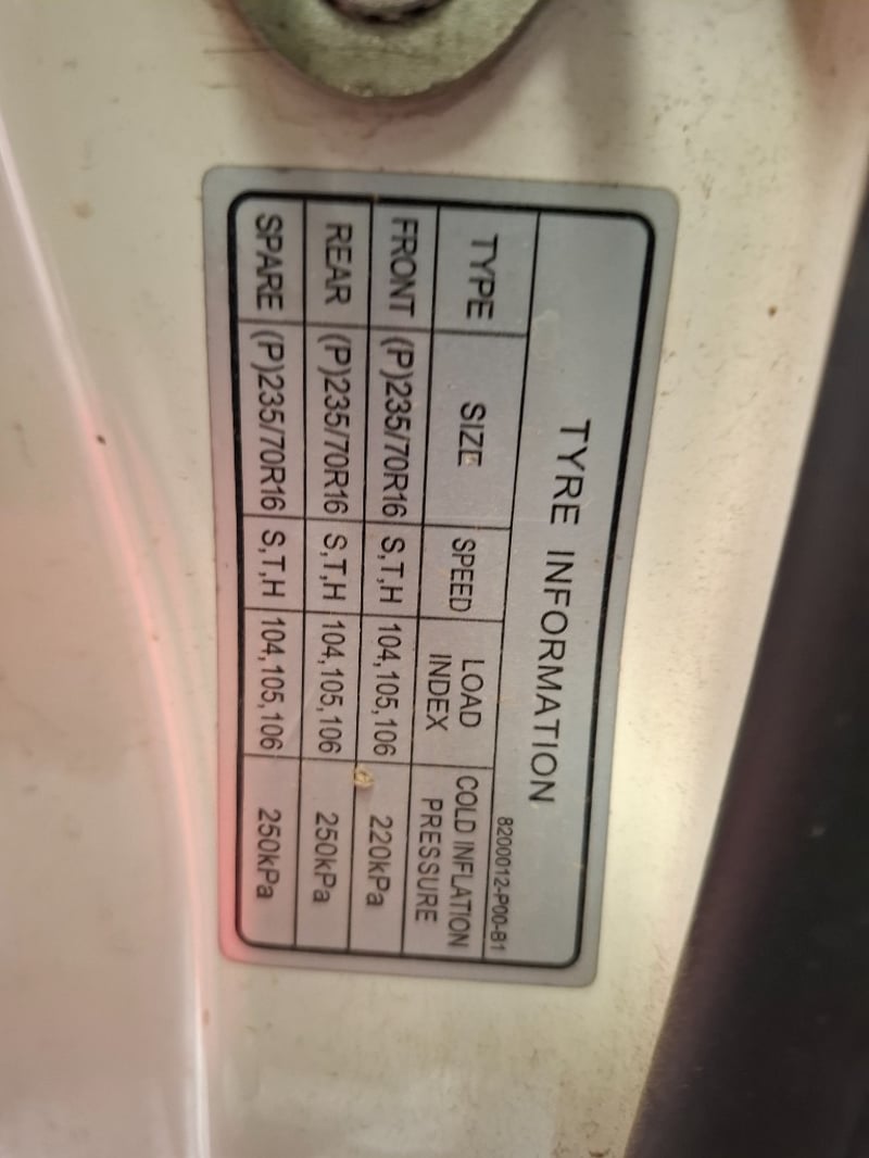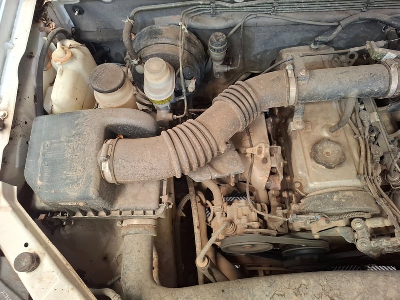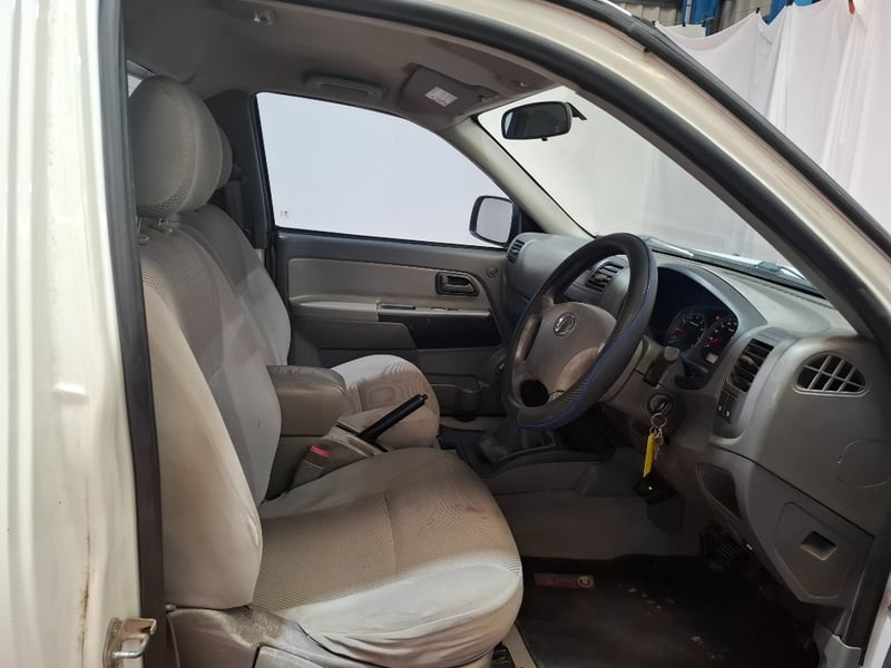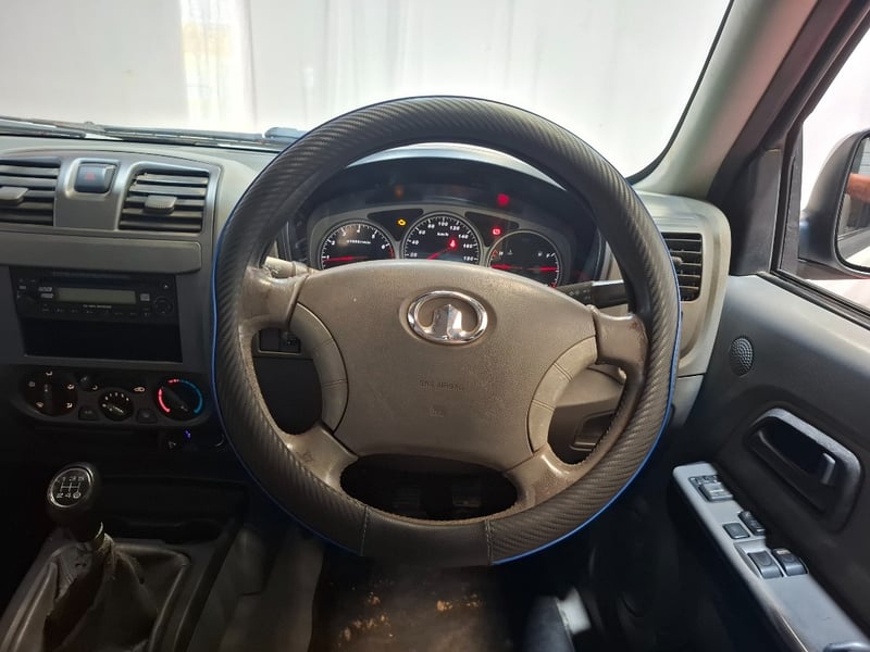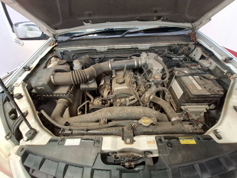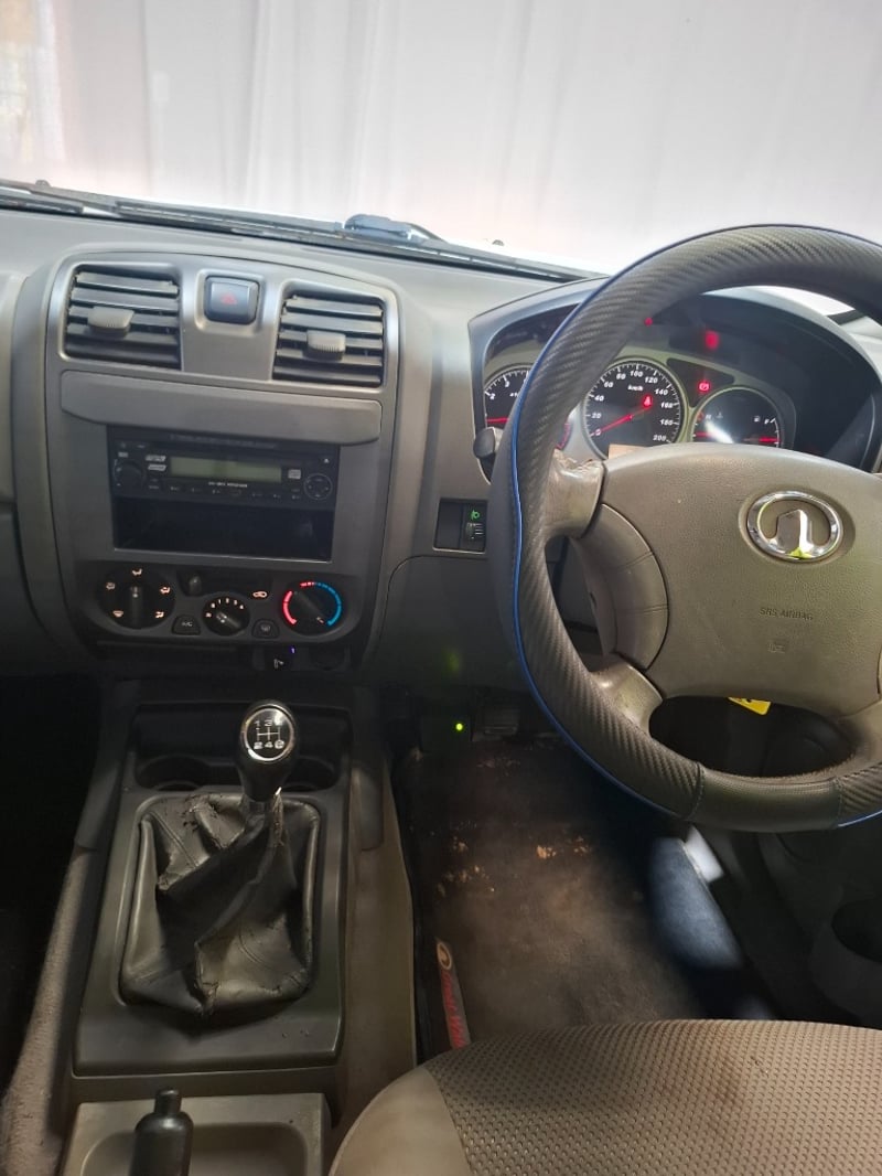 Description/extras: Power windows, SRS, Towbar, Bullbar, Central locking, CD player. Cupholders, windscreen visors, electric side mirrors, floor mats, storage, Surface rust, scratches, scuffs, marks, and dents to exterior; interior is also scratched, marked, and stained. The driver's side door card is coming loose. The engine warning light is lit, and a clunking noise is coming from the rear axle.