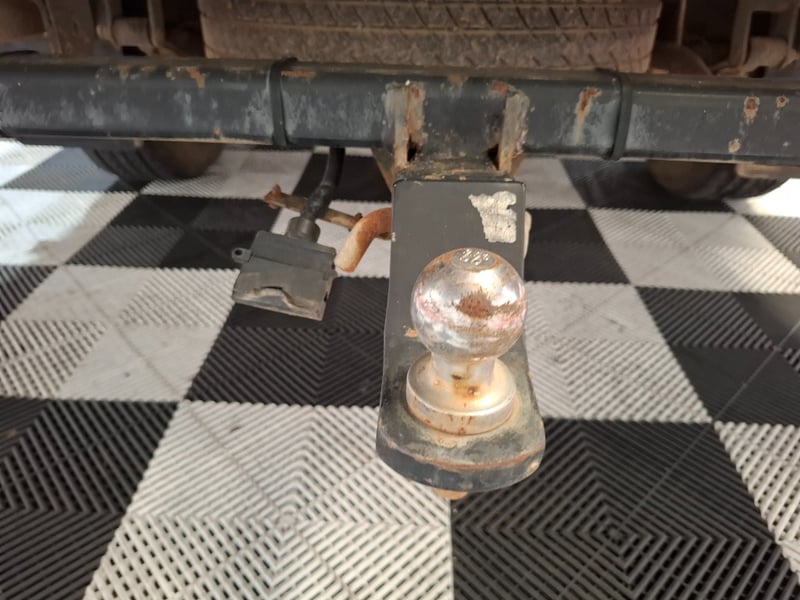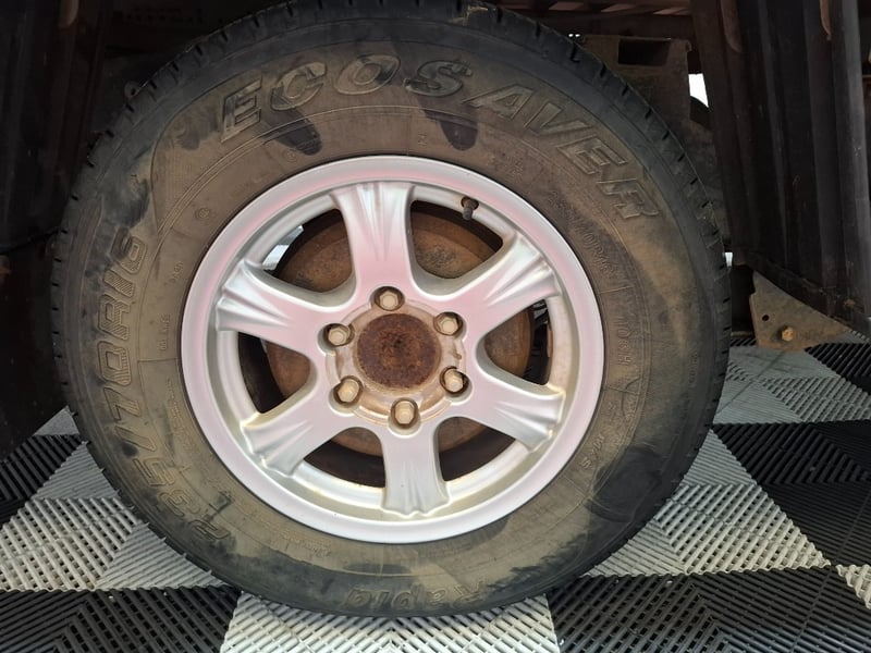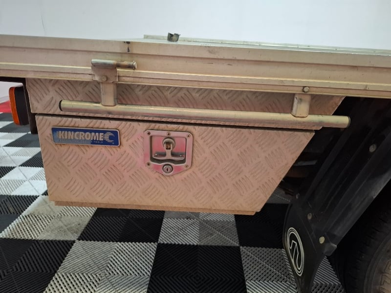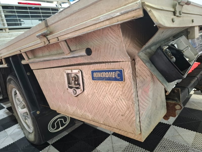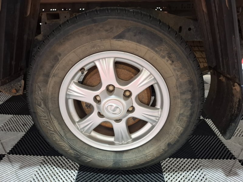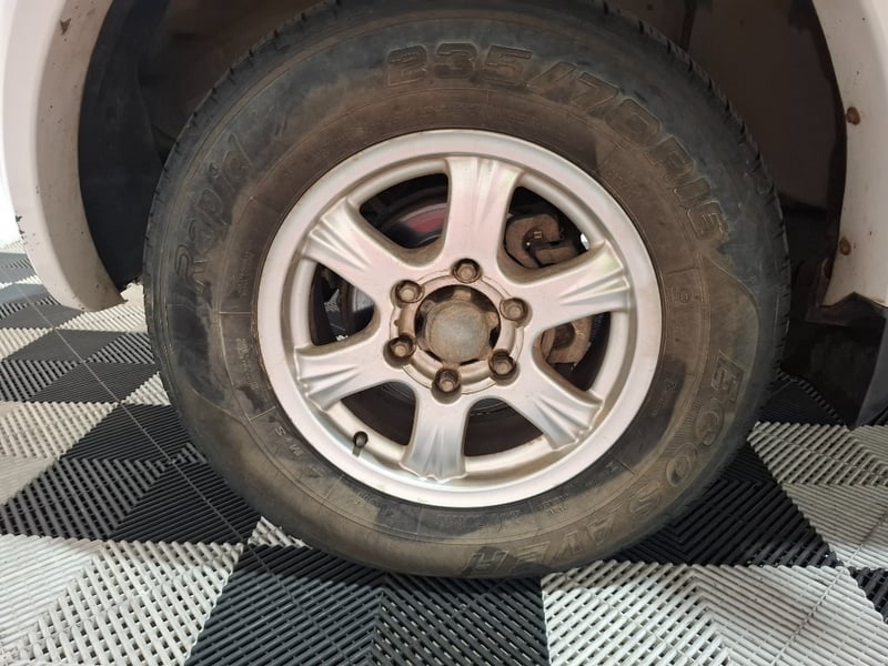 Description/extras: Power windows, SRS, Towbar, Bullbar, Central locking, CD player. Cupholders, windscreen visors, electric side mirrors, floor mats, storage, Surface rust, scratches, scuffs, marks, and dents to exterior; interior is also scratched, marked, and stained. The driver's side door card is coming loose. The engine warning light is lit, and a clunking noise is coming from the rear axle.