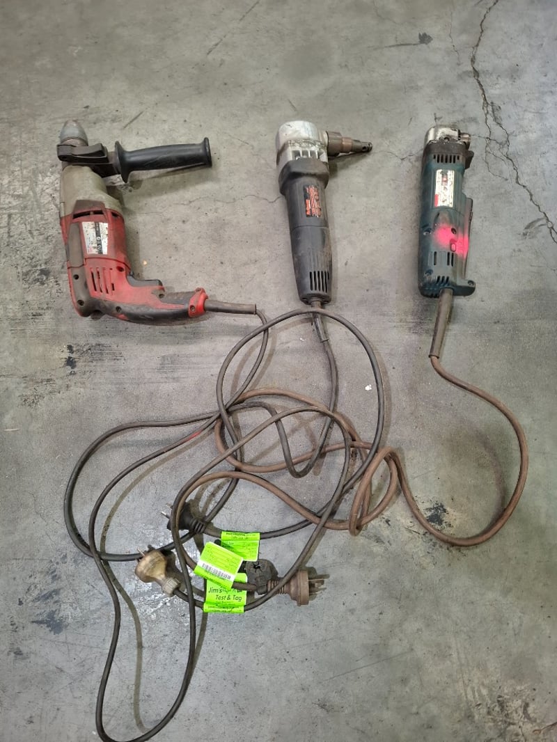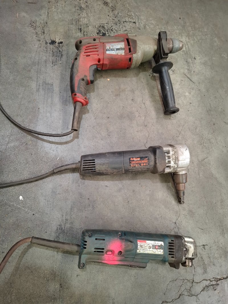 Assortment lot of power tools, includes Drill, nibbler, angle drill