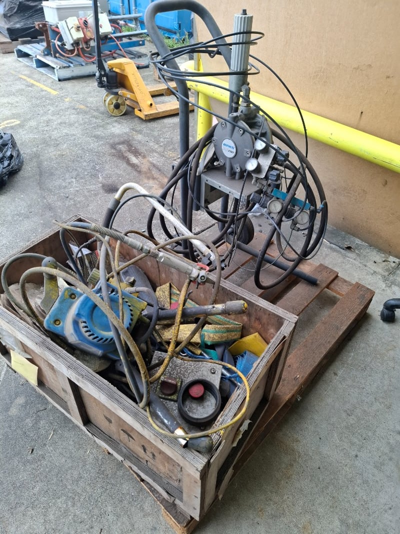 Assortment pallet of a paint compressor and heat shrink