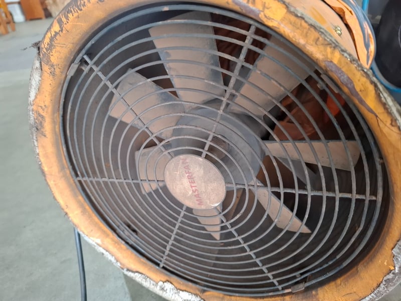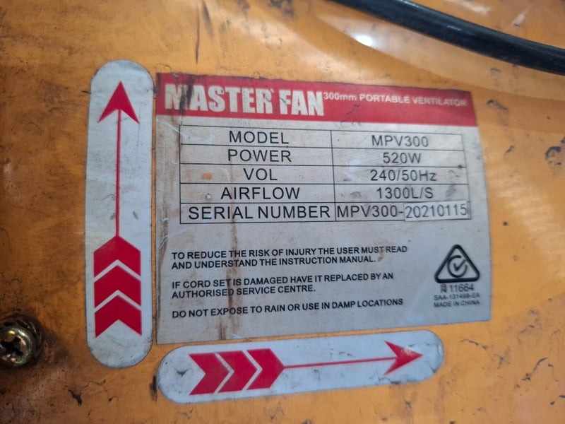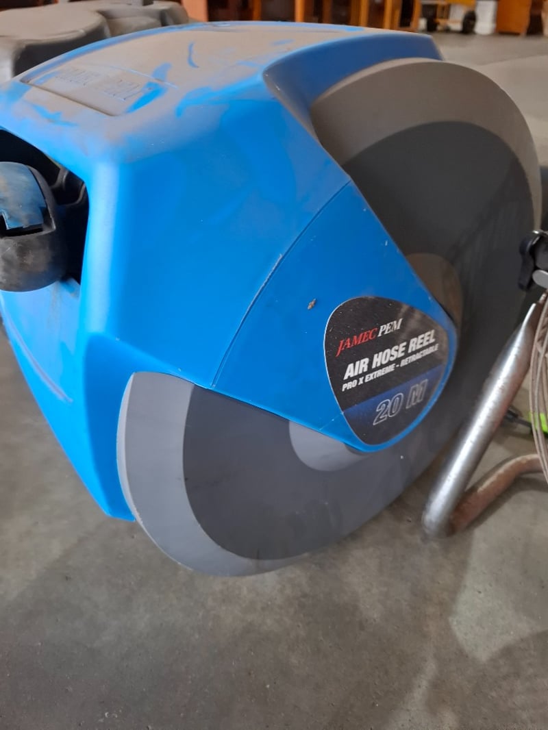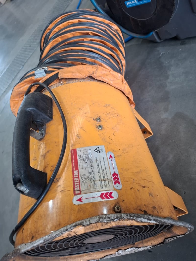 Assortment lot equipment includes 3000mm portable ventilator, air hoses reel and floor industrial fan