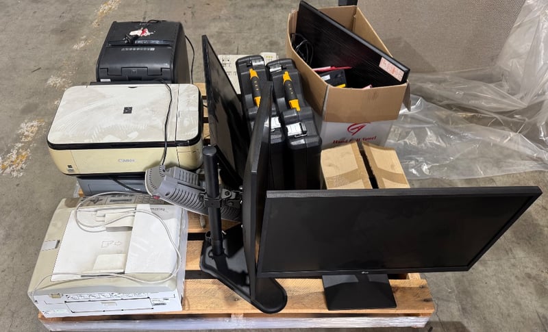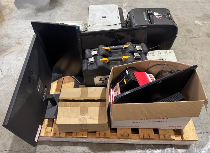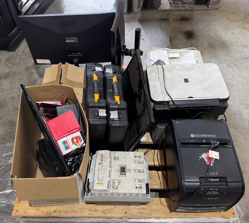 Assorted lot of tech including monitors , printers, paper shredder and more Note: Sold as Lot, working condition unknown