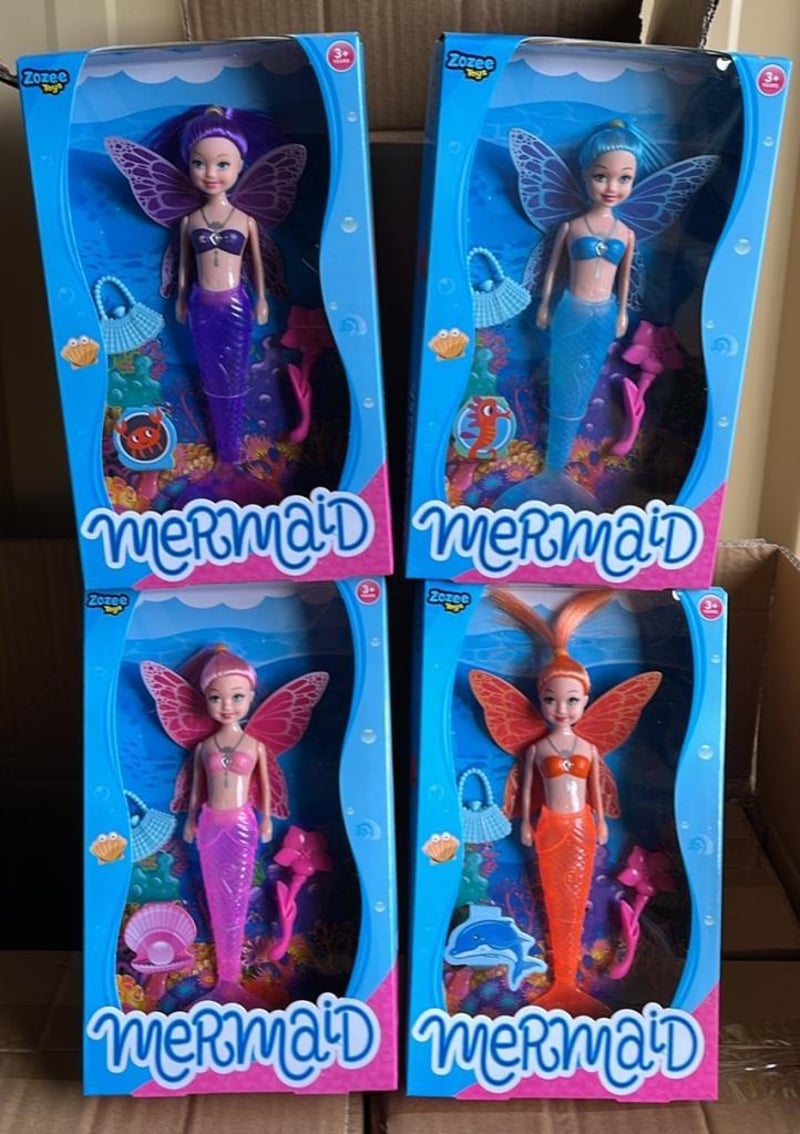 12 X Mermaid Dolls in Gift Window Box, 4 colours, 3 of each SOLD AS BULK LOT