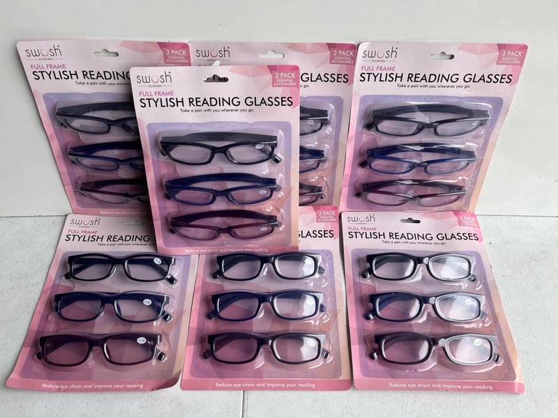 21 Pairs Reading Glasses, 6 assorted magnificatons ranging from 1.00+ to 3.50+ SOLD AS 1 LOT