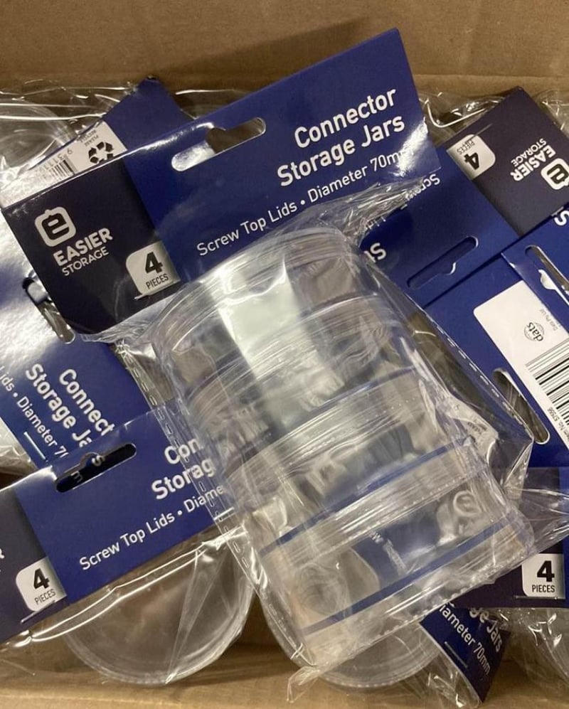 Case of 48 X Connector Jar (12 Sets of 4) - 70mm Round with Screw Top Lids Stackable SOLD AS 1 LOT