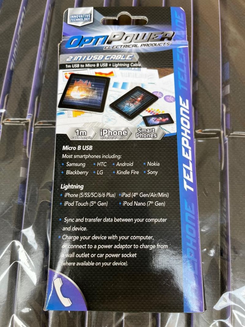 USB, Opti Power, Universal 2 In-1 USB Charging Cables. Sold As Lot.