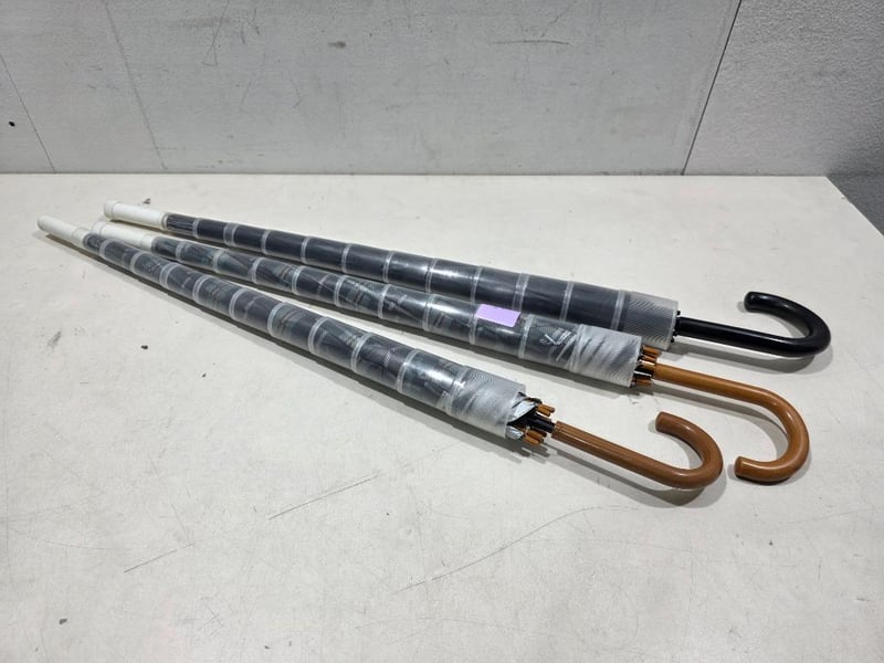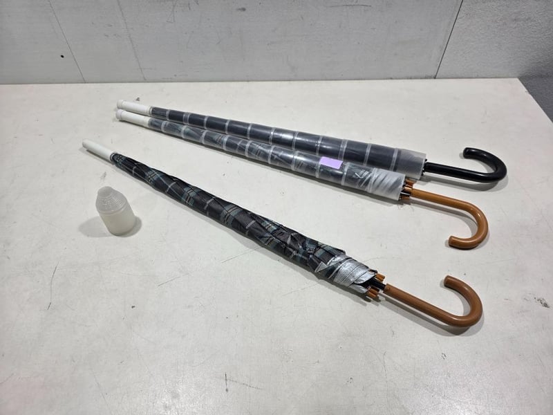 Umbrellas with plastic hard case covers QTY x 3, Assorted Styles SOLD AS LOT