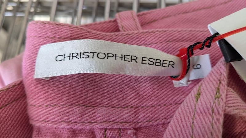 RRP $590 Size 6 Christopher Esber Denim Belt Hillier Pink Mini Skirt