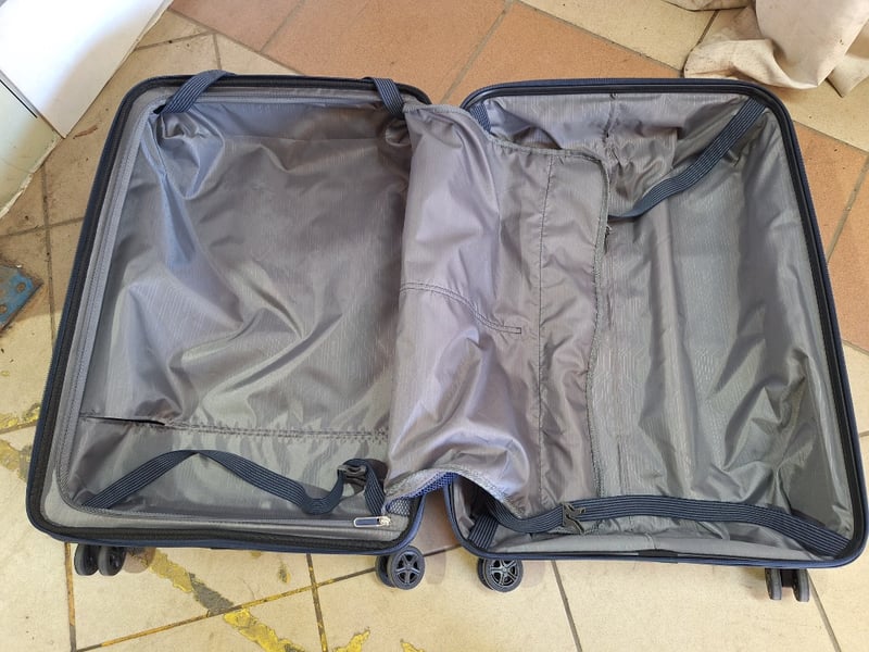 Suitcase On Wheels, Blue FinishDimensions H:66cm W:45cm D:25cm