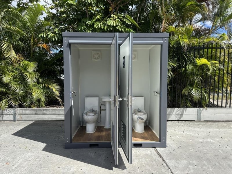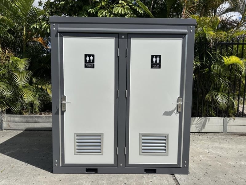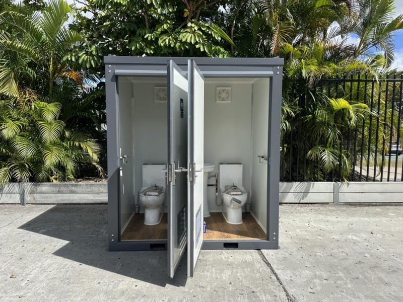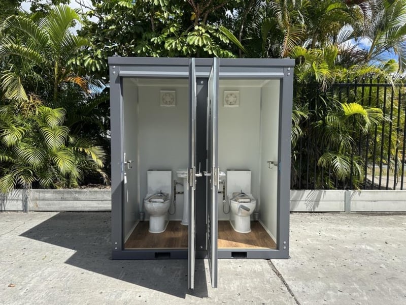 Double Toilet Block FEATURES: - Toilets - Sinks - Extractor Fans/ Vents - Plungers - Lights - Locks and Keys Dimensions: 2160mm Long, 1300mm Wide, 2360mm High RSE CODE: 0011 Location: Carole Park, QLD Contact: Gage on 0458 732 549 or alternatively [email protected]