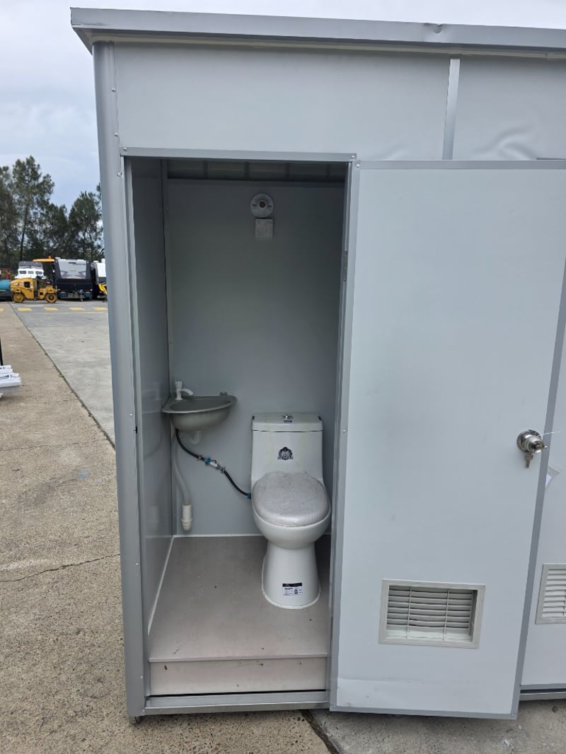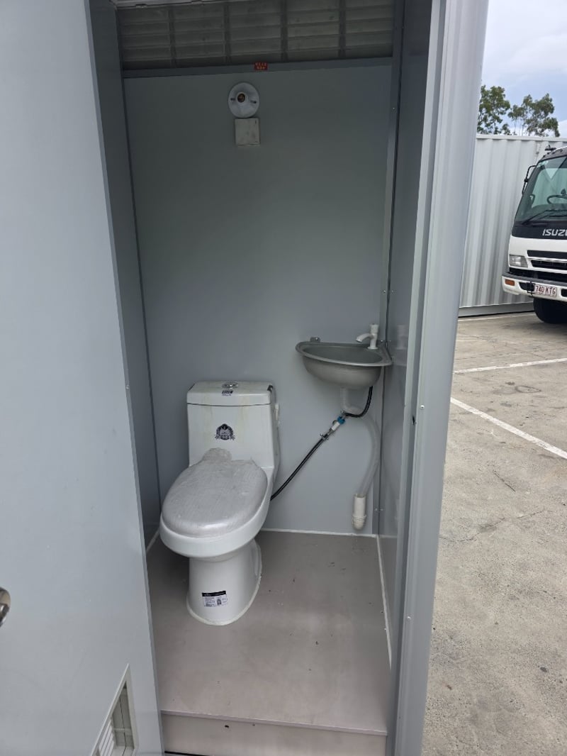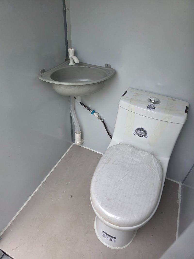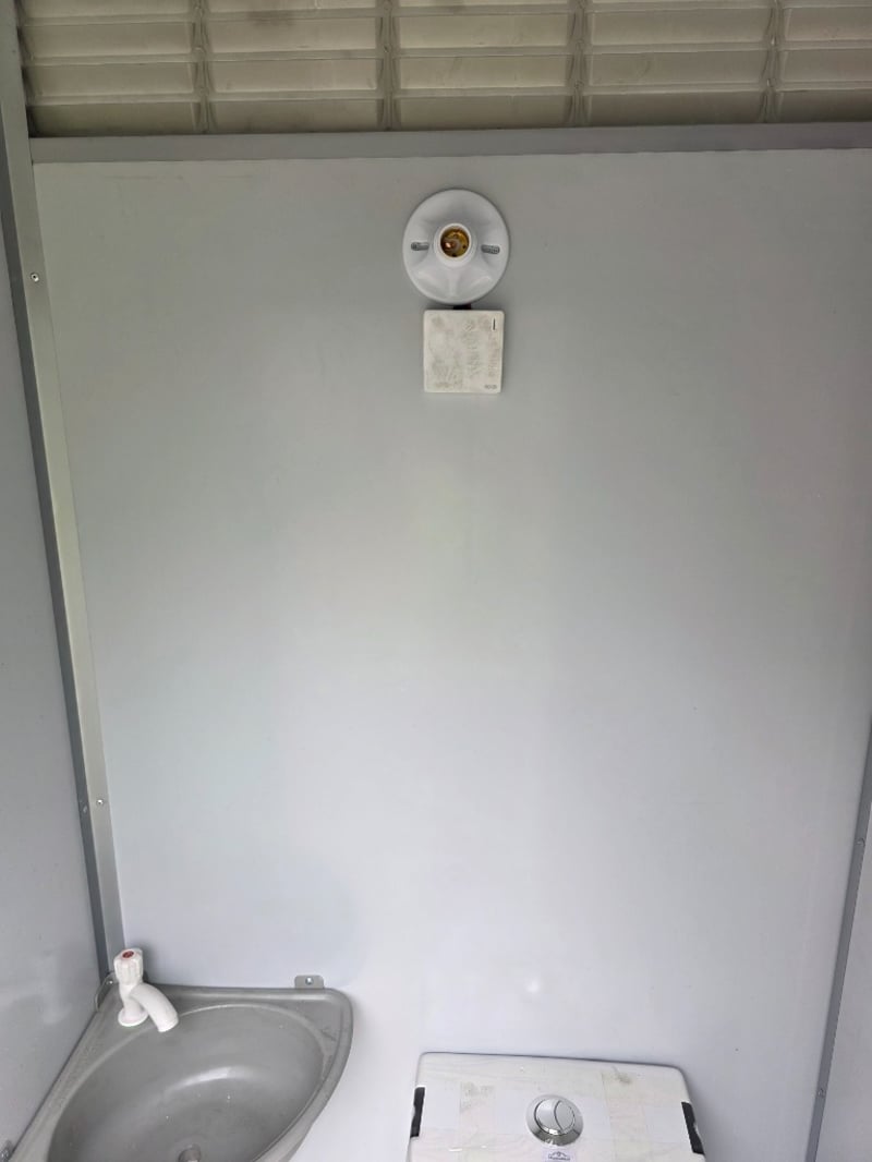 Includes: Toilet, washbasin, exhaust fan, faucet, and light fixture.
