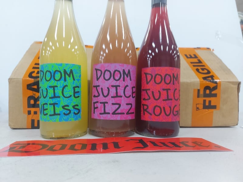 Assorted Lot including, 2 Bottles of Doom Juice Rouge, 3 Bottles of Doom Juice Fizz, and 1 Bottle of Doom Juice Weiss, 750ml, 6 x Bottles