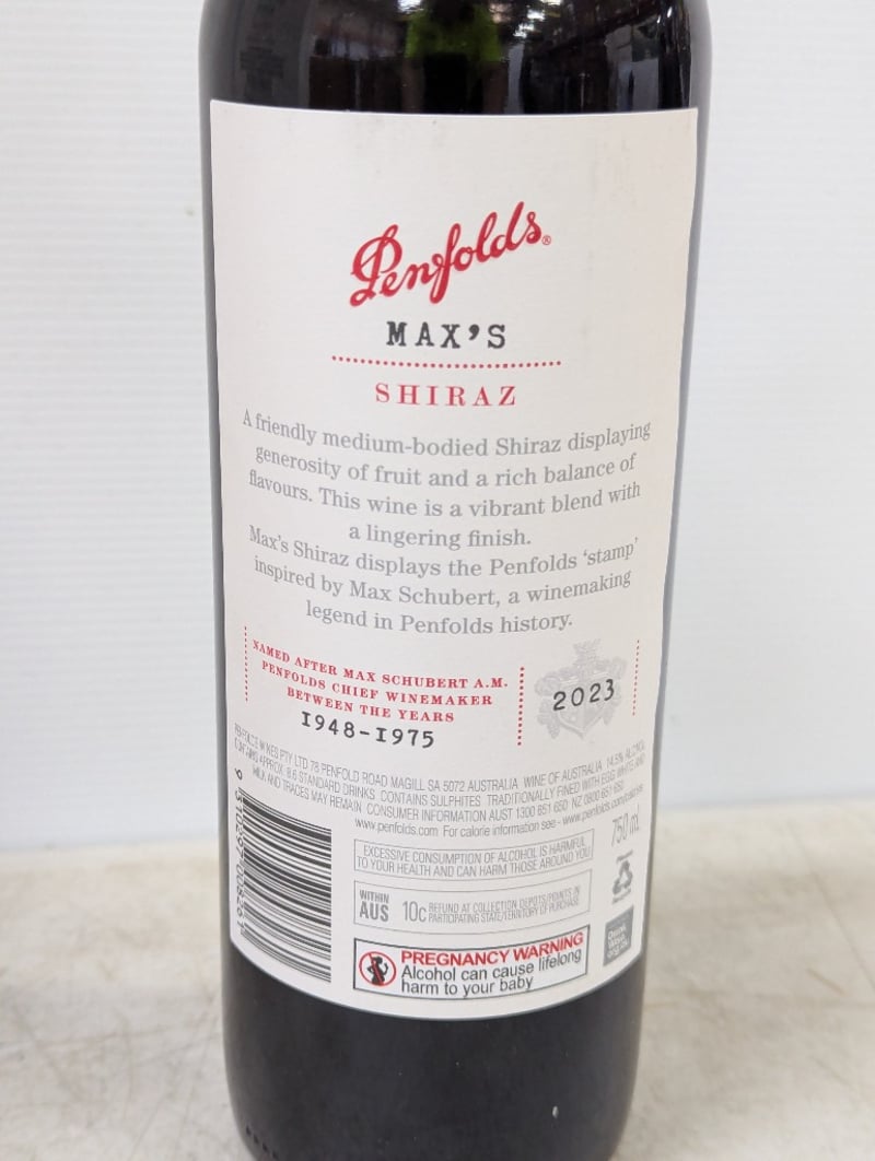 Wine, Penfolds, Shiraz, 750ml, 14.5% alc/vol, 6 x bottles