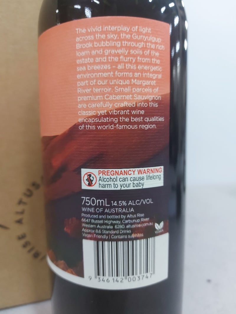 Cabernet Sauvignon, 2022, Altus/Rise, 750ml, 14.5% alc/Vol, 12 x Bottles