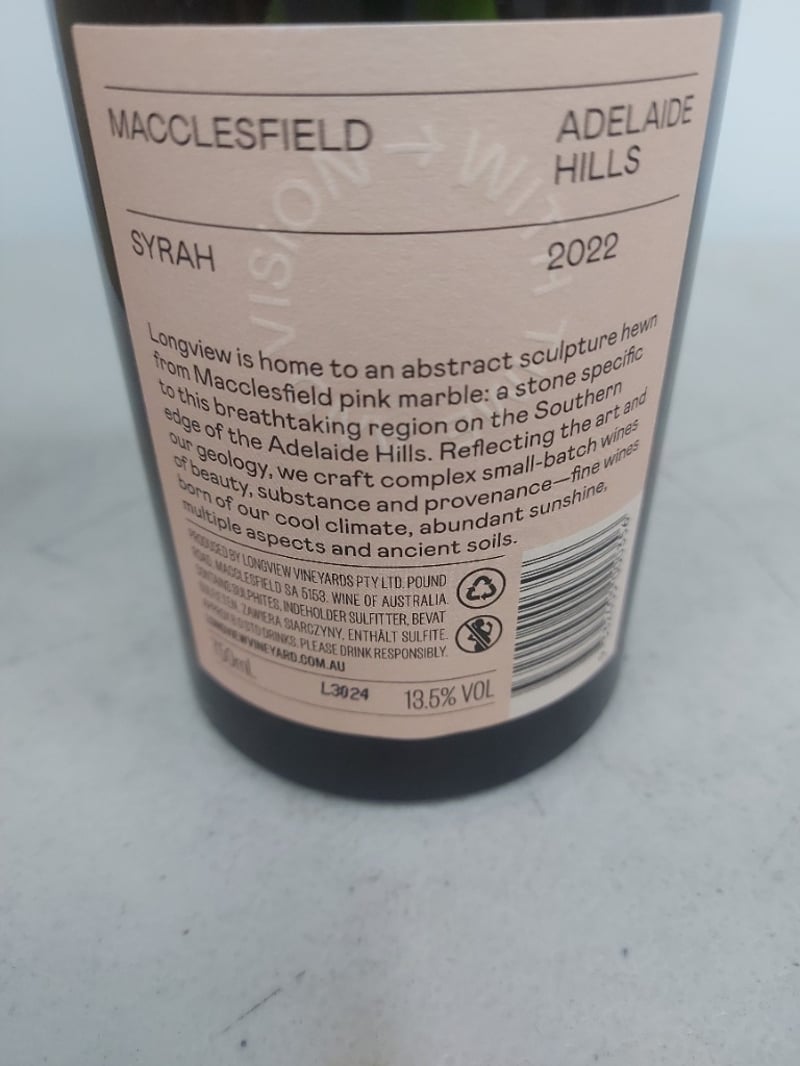 Syrah, 2022, Longview, 750ml, 13.5% alc/Vol, 6 x Bottles