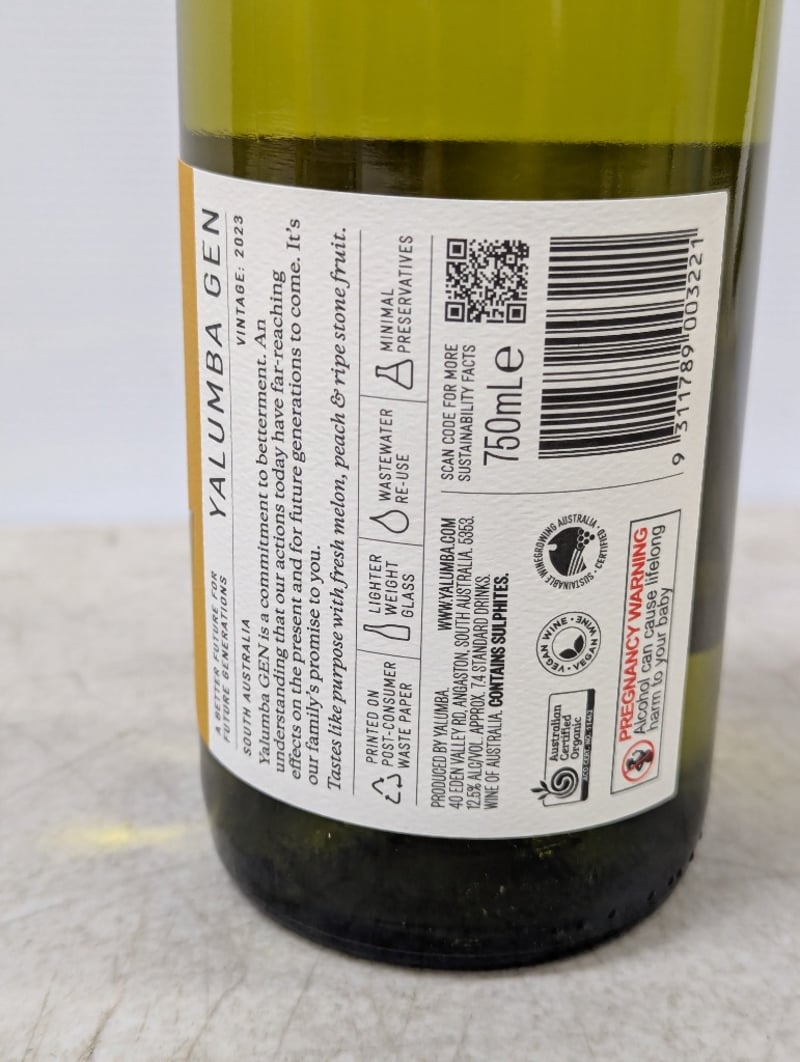Wine, Yalumba, Organic Chardonnay, 750ml, 12.5%alc/vol, x 6 bottles