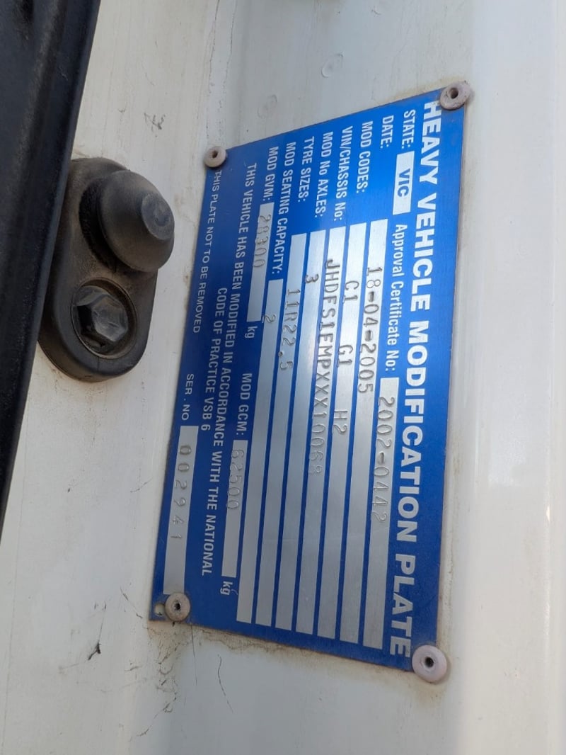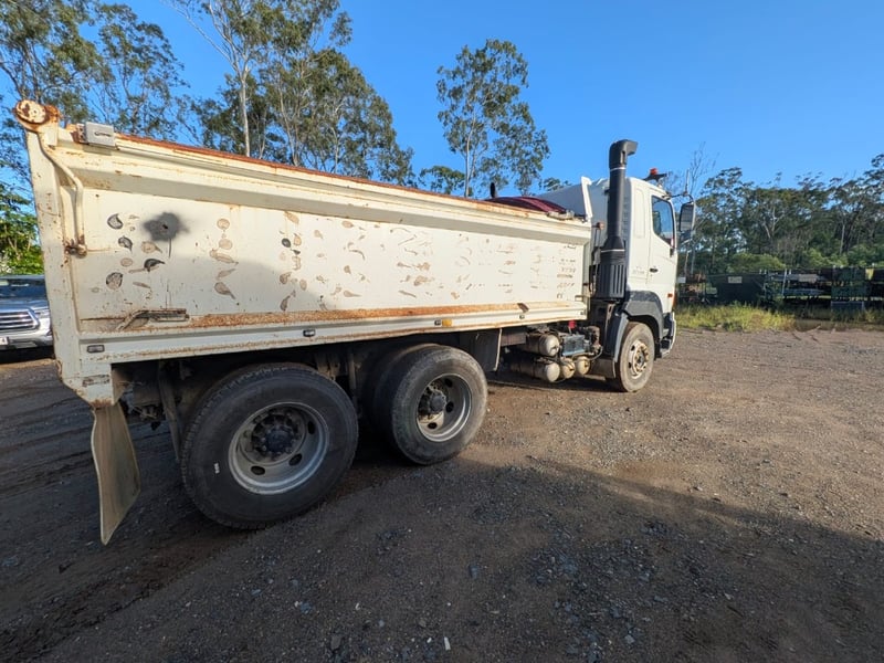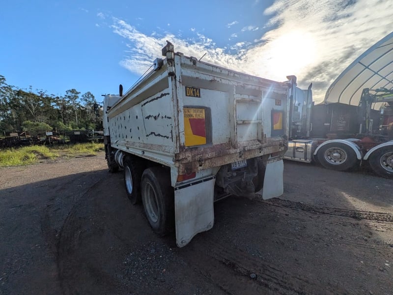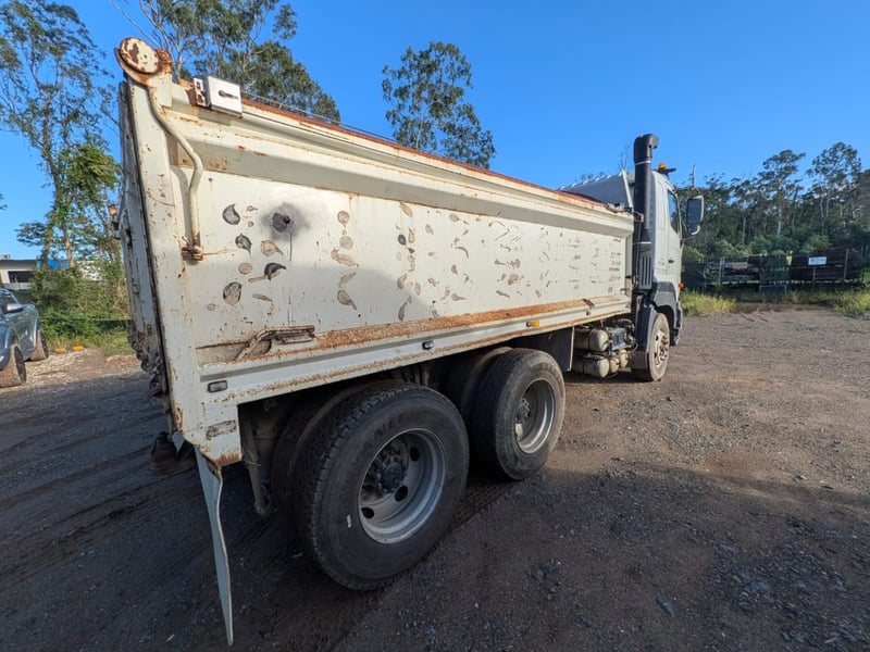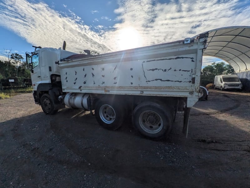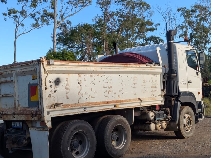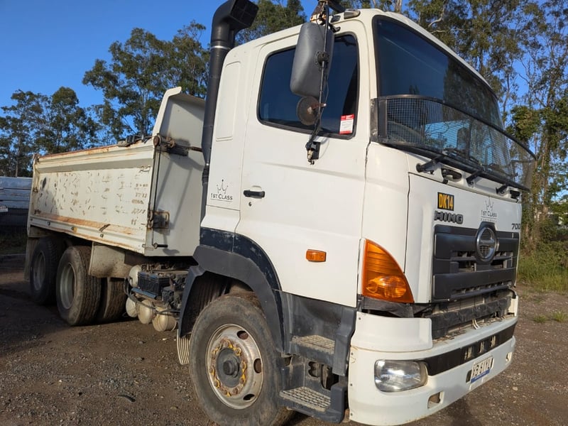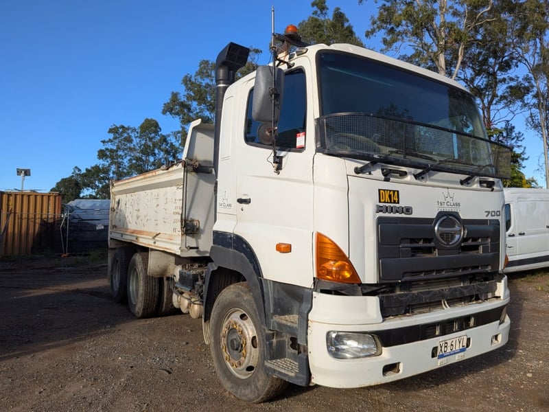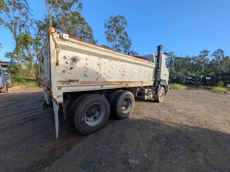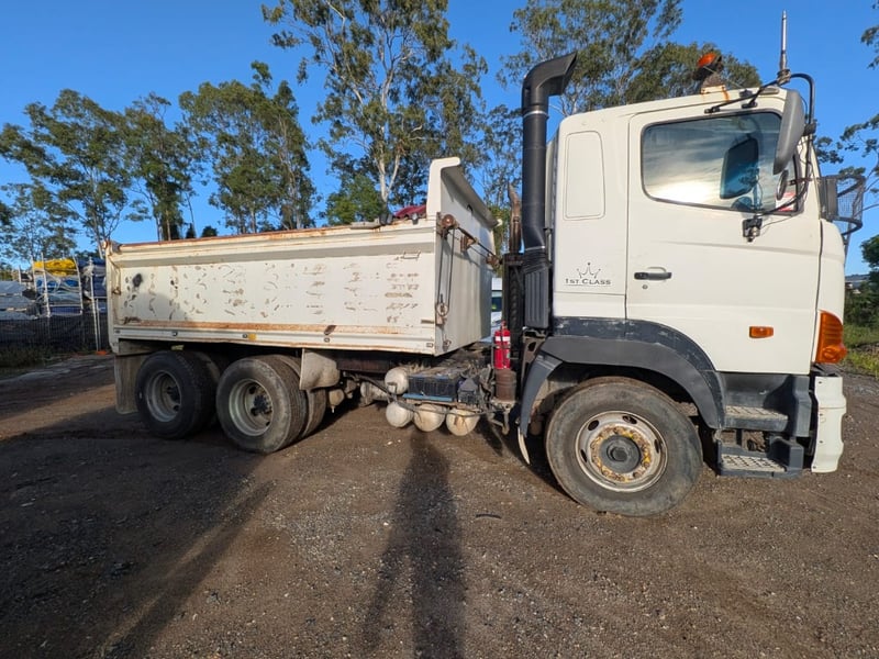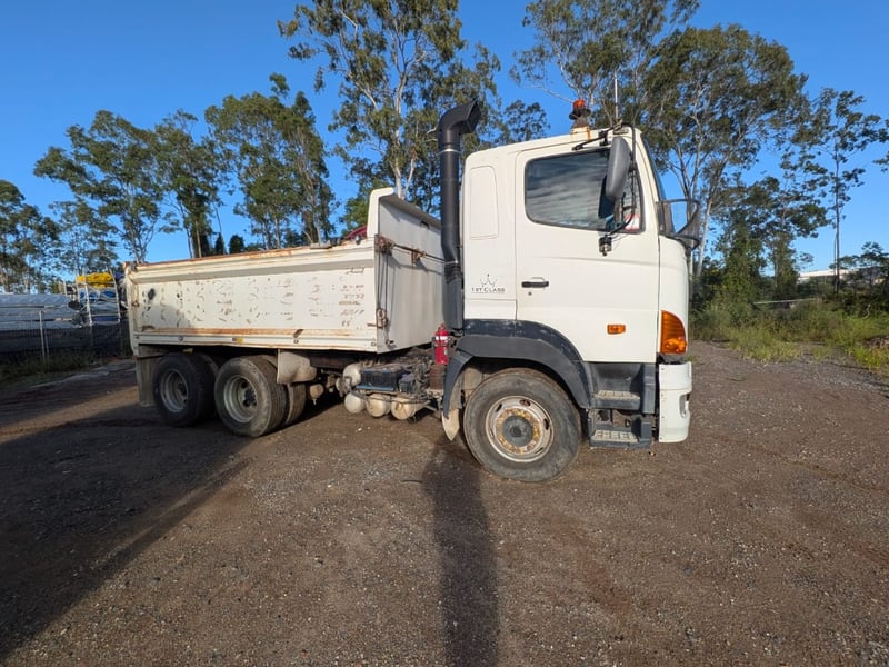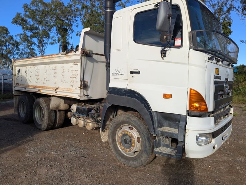 2005 Hino 700 FS Tipper Year: 2005 Make: Hino Model: FS Body: Tipper Configuration: 6x4 Bogey Axle Suspension: Airbag Transmission: Eaton Fuller manual Odometer Indicated: 526,038 kms (when photographed) Engine: Hino 6 Cylinder Turbo Diesel Engine Number: E13CTS10264 (As Per PPSR) VIN: JHDFS1EMPXXX10066 Description/Extras: - Ac day Sleeper cab - Tarp - Stereo - UHF - PTO - Camera- unknown working condition Marks and scratches GCM: 28,300 kgs GVM: 62,500 kgs Sold Unregistered LOCATION: Onsite Logan, QLD [ Not Lloyds Branch ] All items are sold Untested and “AS IS, WHERE IS” with no guarantees, warranties or representations as to completeness, condition or functionality.