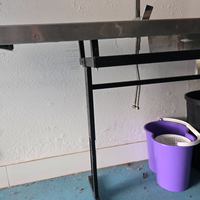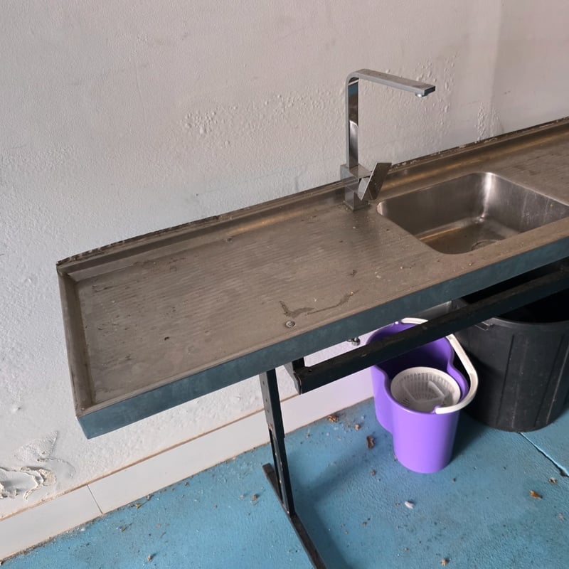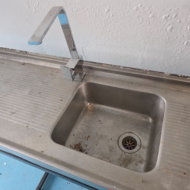 Commercial stainless steel dishwasher sink bench including bin and bucket Dimensions approx 91cm H x 183cm W x 47cm D Sold as lot