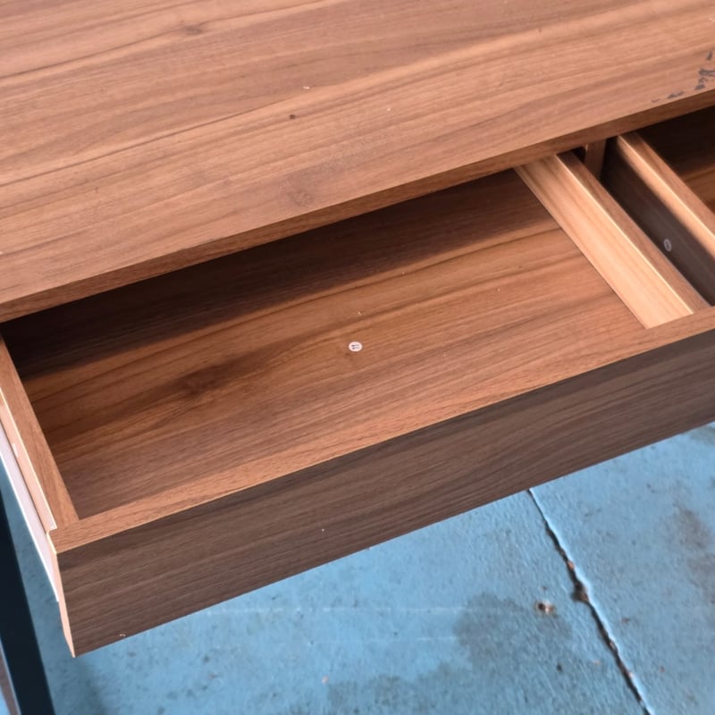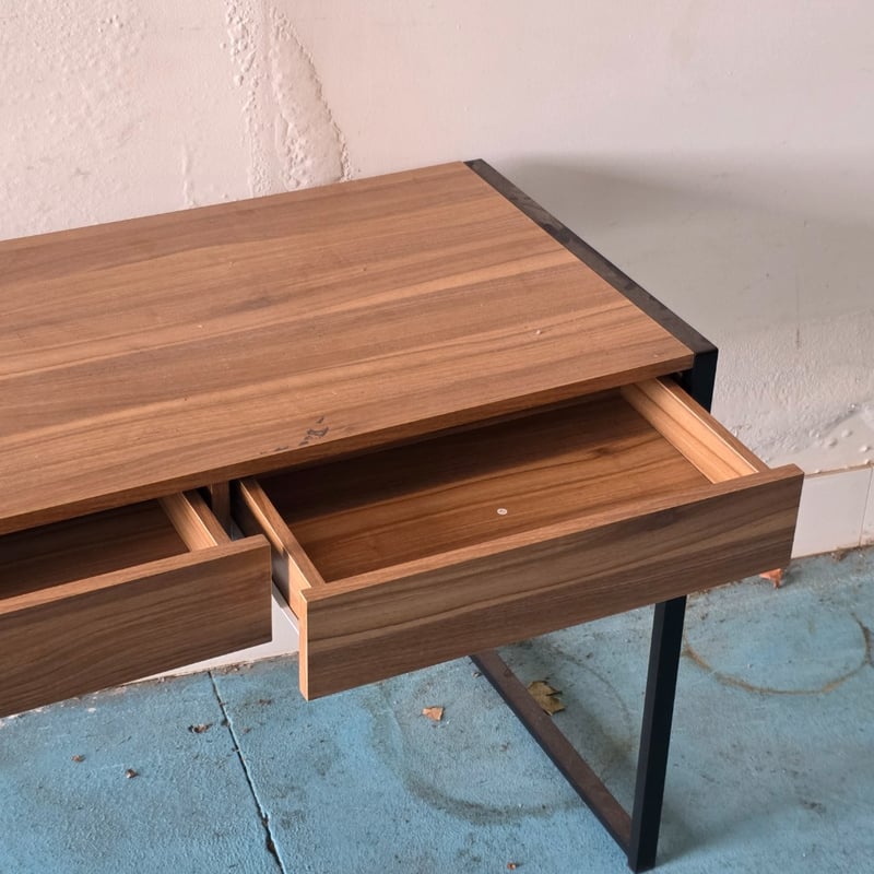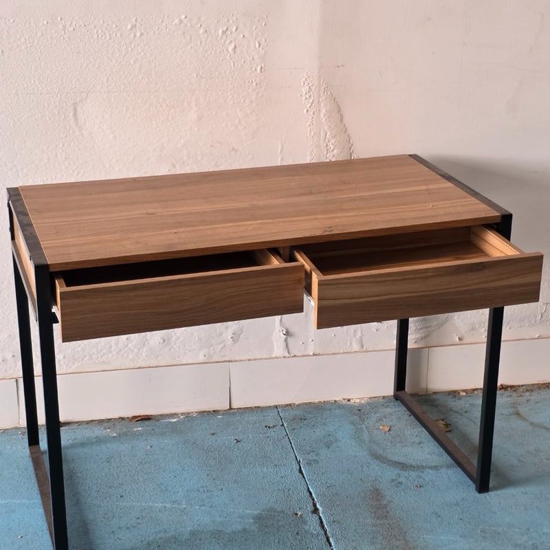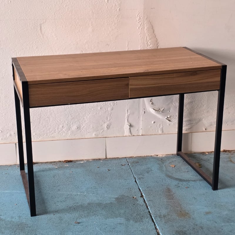 Office desk, timber style office desk, 2 drawers, metal legs Dimensions appox 76cm H x 102cm W x 55cm D