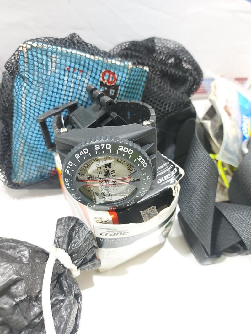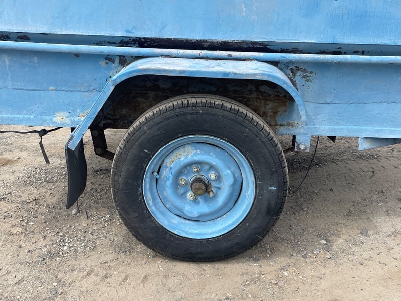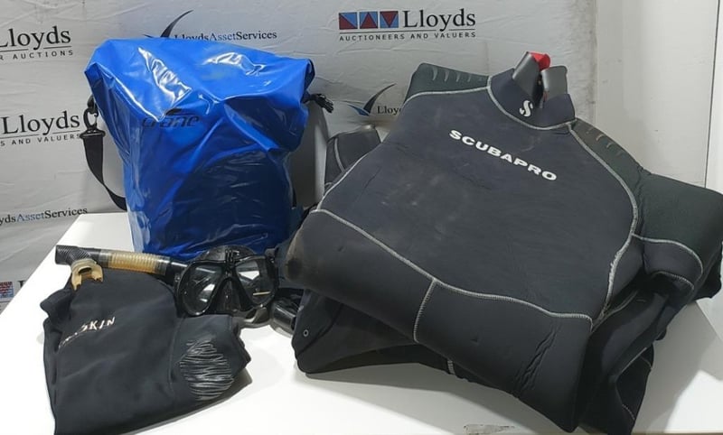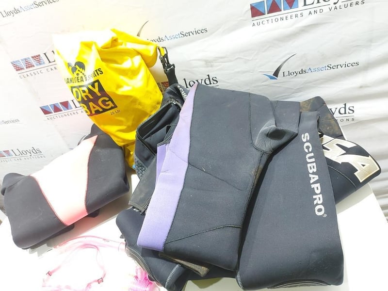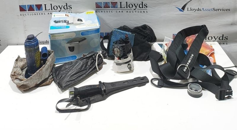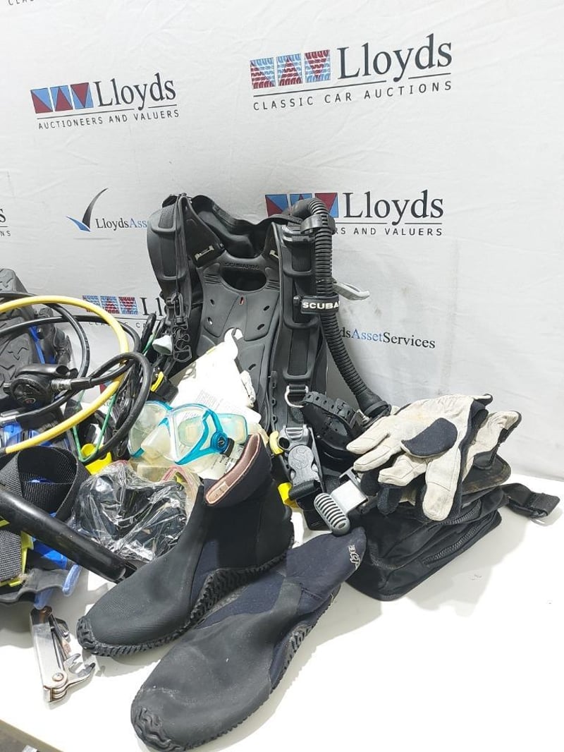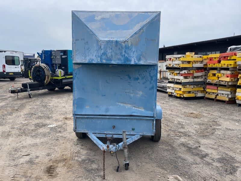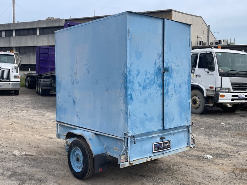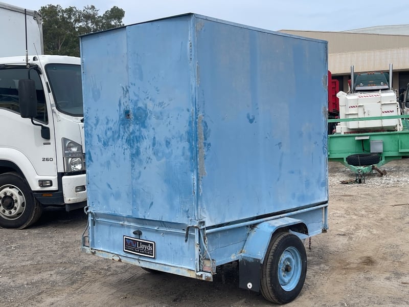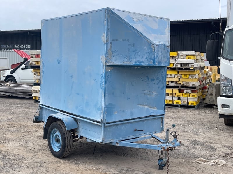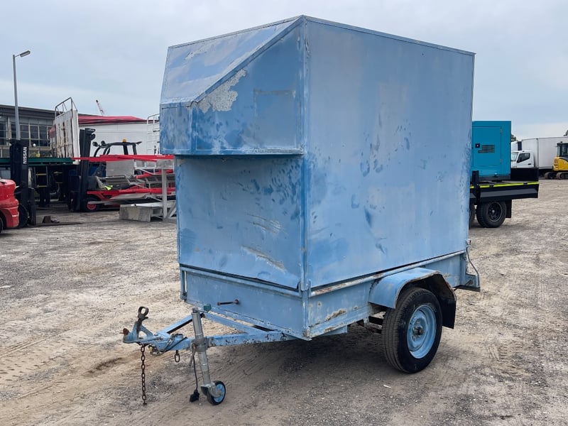 Home Make Blue Trailer + Scuba diving Gear L: APPROX 3m note: Sold as a lot. Has padlock & key for door. note: no compliance plate. KEY# MMR4