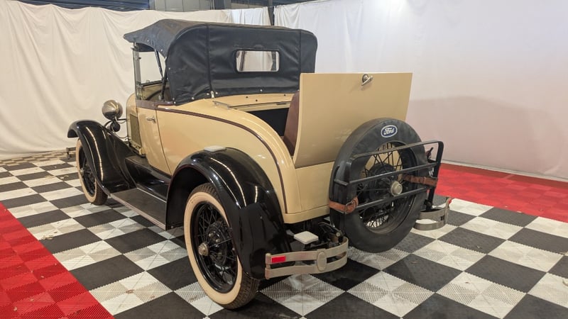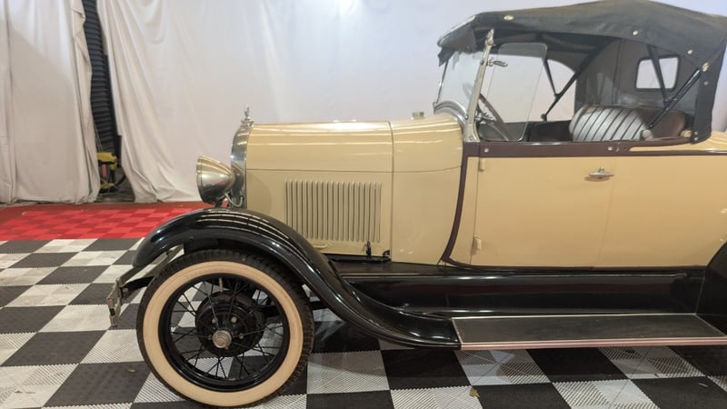 1928 FORD MODEL A ROADSTER - BEIGE AND BLACK TWO-TONE - RUMBLE SEAT - WIRE WHEELS AND WHITEWALLS - OLDER DRIVER-QUALITY RESTORATION - 81,915 MILES INDICATING