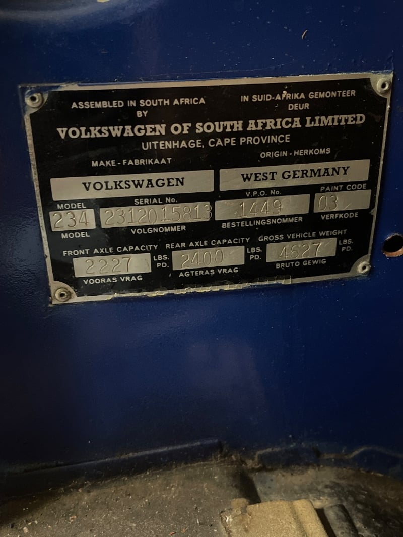1971 VW WESTFALIA KOMBI T2 POP-TOP CAMPER - BLUE - 68,772 MILES - DRY CLIMATE SURVIVOR, SOUTH AFRICA/USA IMPORT