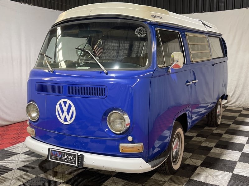 1971 Volkswagen Westfalia Kombi T2 Pop-Top Camper. Rear-wheel drive. 1.6-litre air-cooled flat-four petrol. 4-speed manual. Indicating 68,772 miles. 4 seats. Sold unregistered.