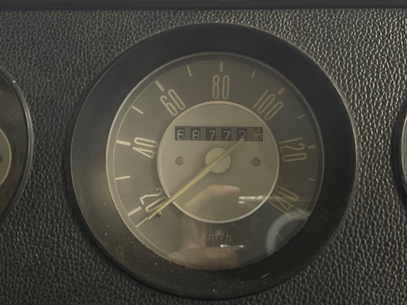 The engine bay shows the 1600cc air-cooled engine with its original single-barrel carburettor setup. There is the usual age-related patina on the engine tin and some surface rust in the bay, consistent with a used and older vehicle, but nothing alarming. No engine number is recorded in this listing, so a potential buyer should verify whether the original numbers-matching engine is still in place. The pop-top canvas cannot be assessed from the photos as the roof is shown only in the closed position. T2 Westfalia pop-top canvas can run $800 to $1,500 to replace if needed, so have a good look at that during inspection. Steel wheels with VW caps and whitewall inserts give it excellent period character. This is a genuinely enjoyable, head-turning classic with a fascinating provenance story.
