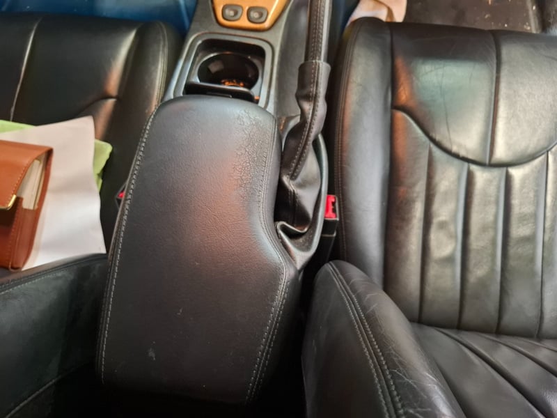 * Centre armrest leather shows surface wear and scuffing consistent with age