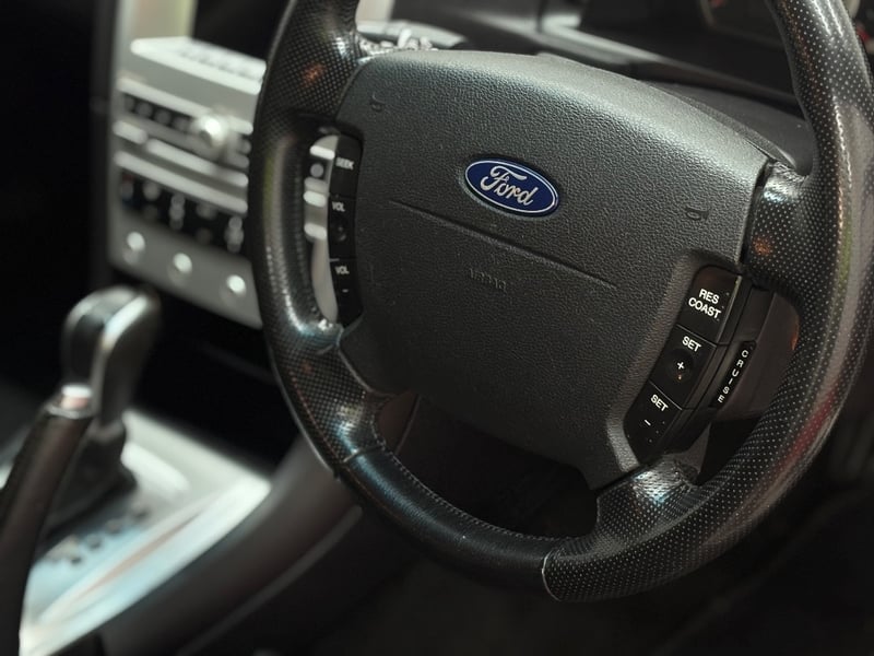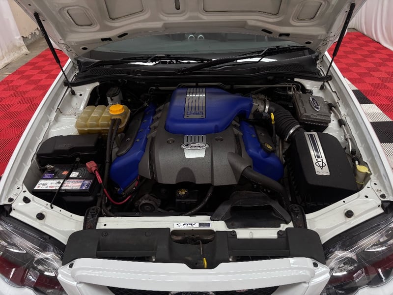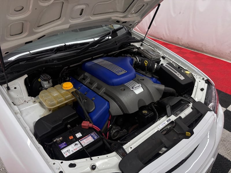 Photos show the exterior presenting very well for the age. Paint is glossy with good depth, panels are straight and properly aligned, and the full FPV body kit is intact including the front splitter, side skirts, and rear treatment. The vendor has done the right thing and replaced all suspension bushes, which is a solid spend on a 20-year-old performance car and means the chassis should feel tight. On the interior, the vendor is upfront that the leather is cracked and torn as shown in the photos, and there is general wear on the dash and trim. It is an honest driver's interior, not a show-room example, so factor that into your bid.